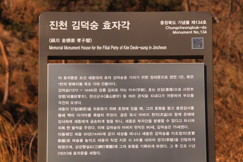 이 효자각은 모암 김덕숭의 효심을 기리기 위해 1663년(인조 11) 아버지 김천익의 묘 옆에 세워졌는데요,