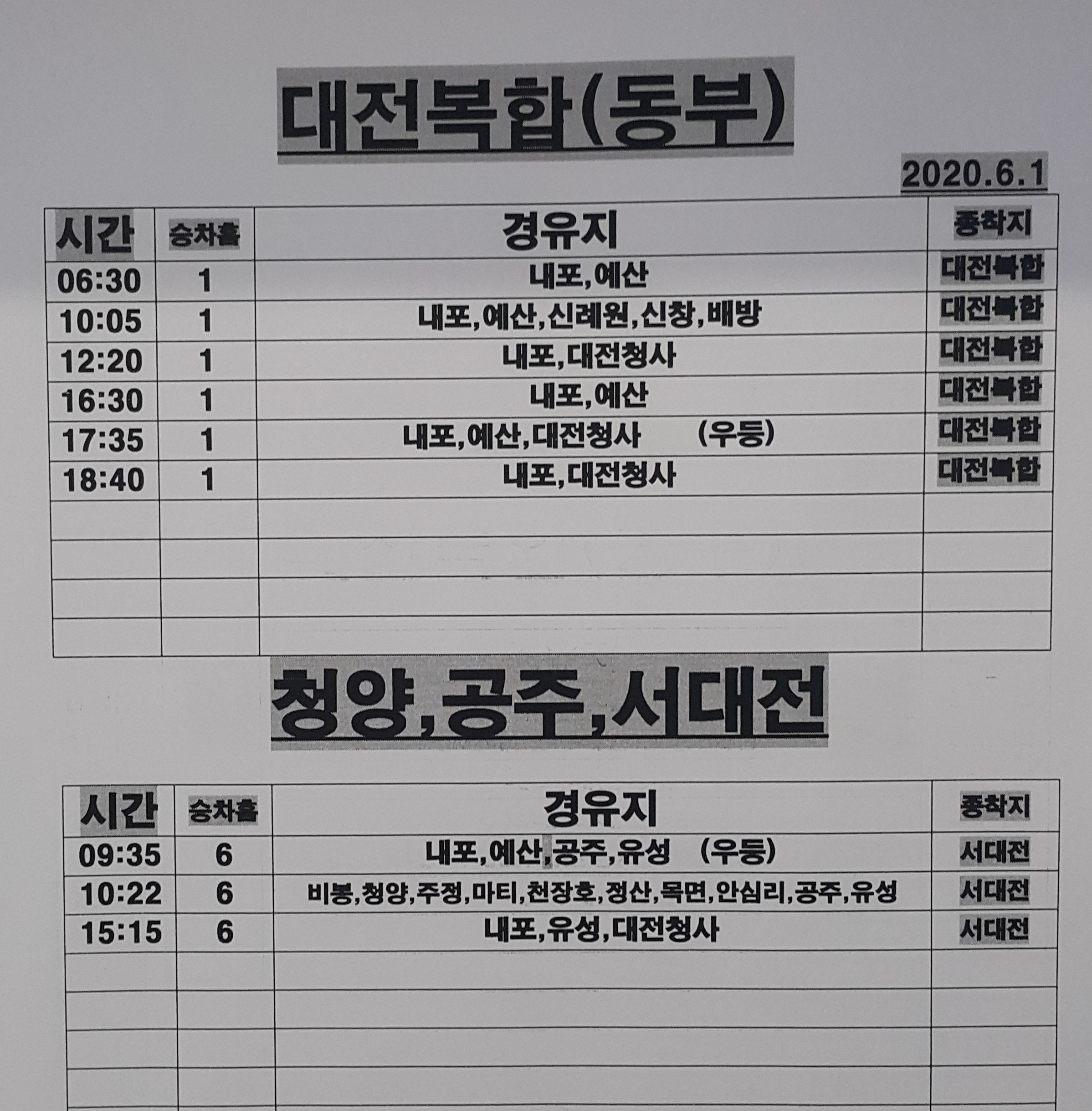 홍성 출발 대전복합 동부 청양, 공주, 서대전 방면.