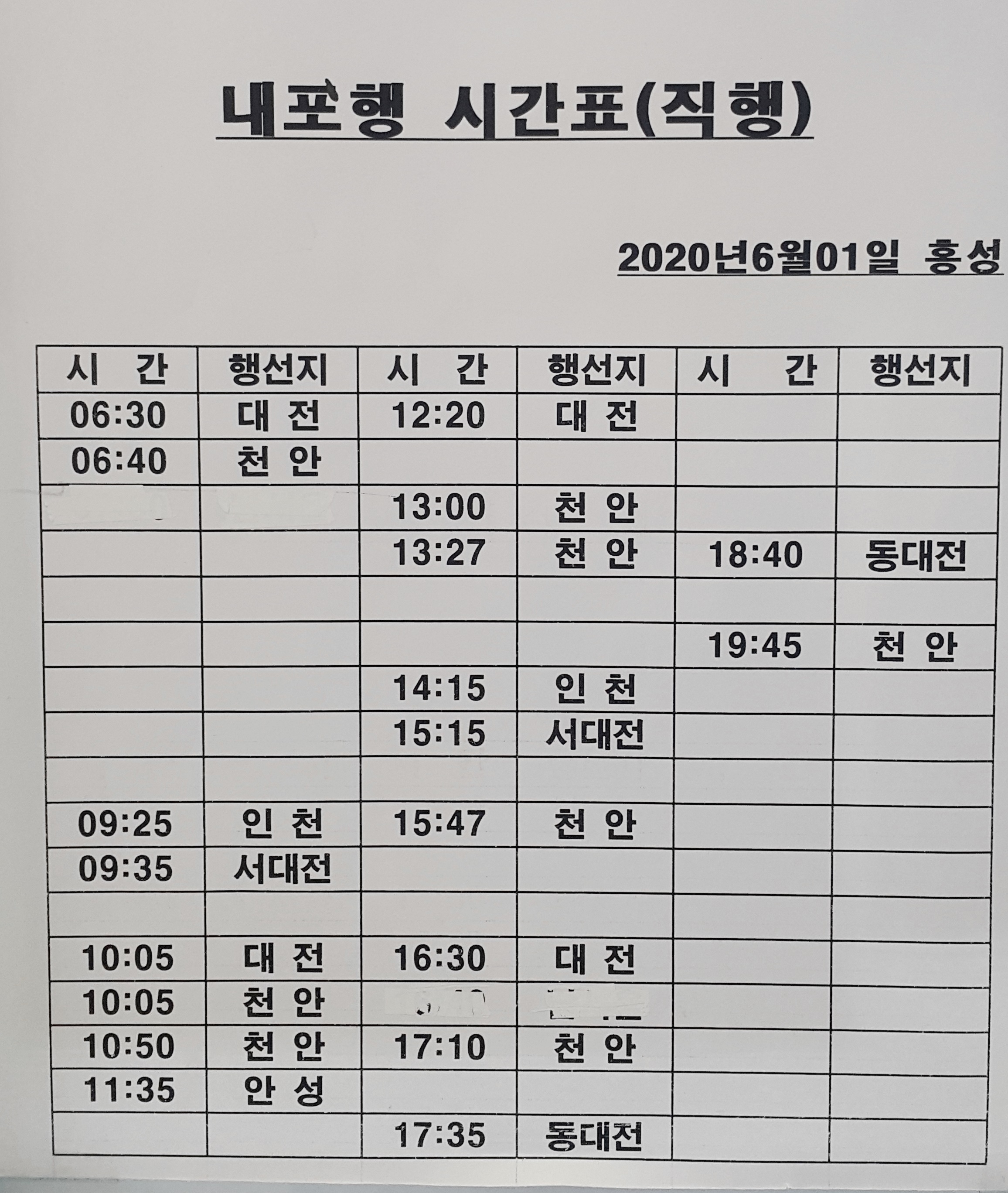 홍성시외버스터미널 시간표