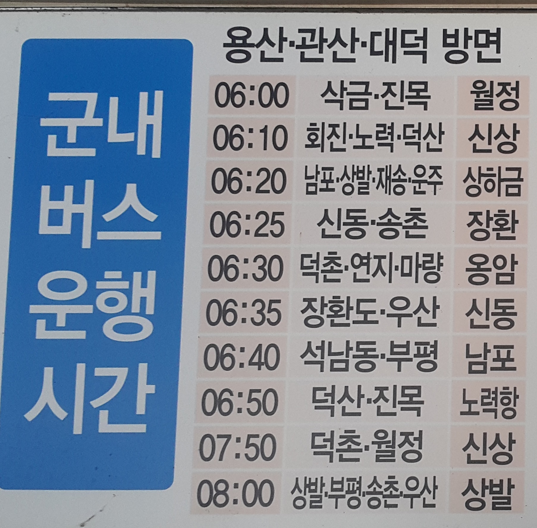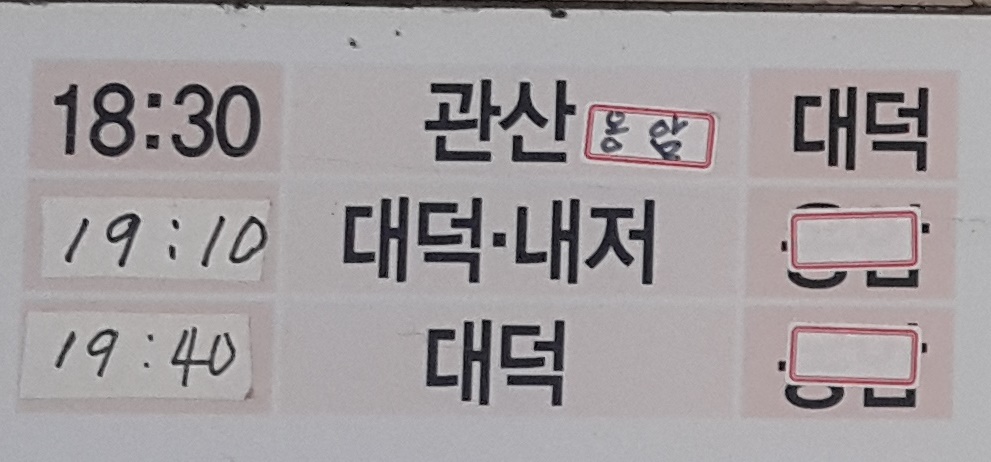 장흥시외버스터미널 출발 용산, 관산, 대덕 방면