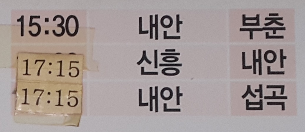 장흥시외버스터미널 출발 신흥, 기동, 부춘, 섭곡 방면