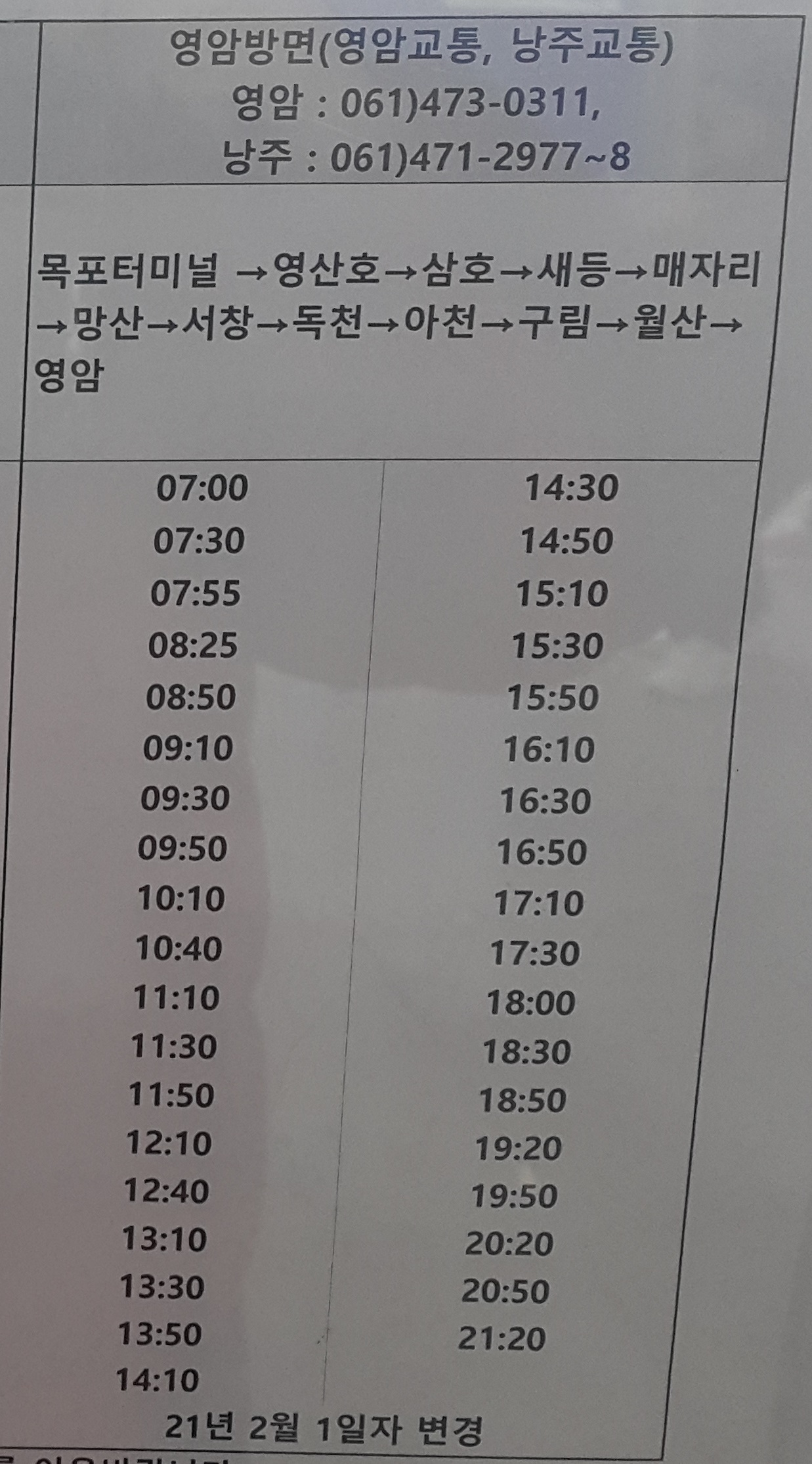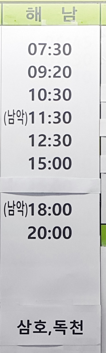 목포 출발 해남, 삼호, 독천 방면.