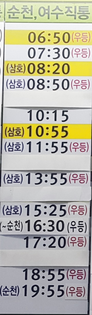 목포 출발 순천 여수 방면 직행
