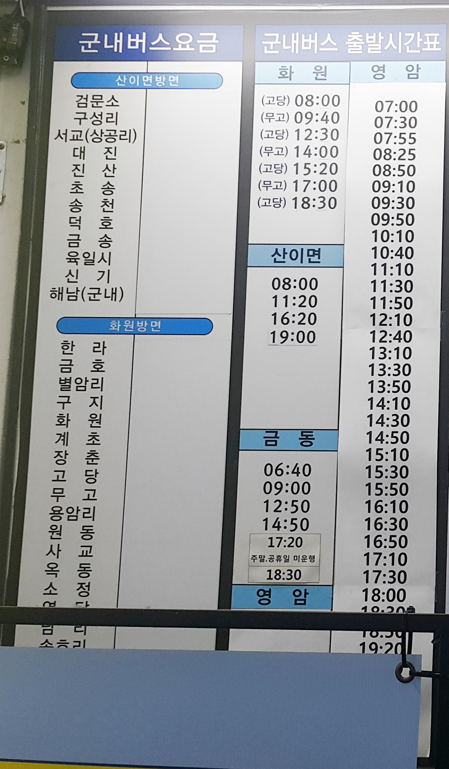 목포시외버스터미널 군내버스 출발 시간표