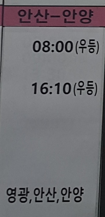 목포 출발 영광, 안산, 안양 방면.
