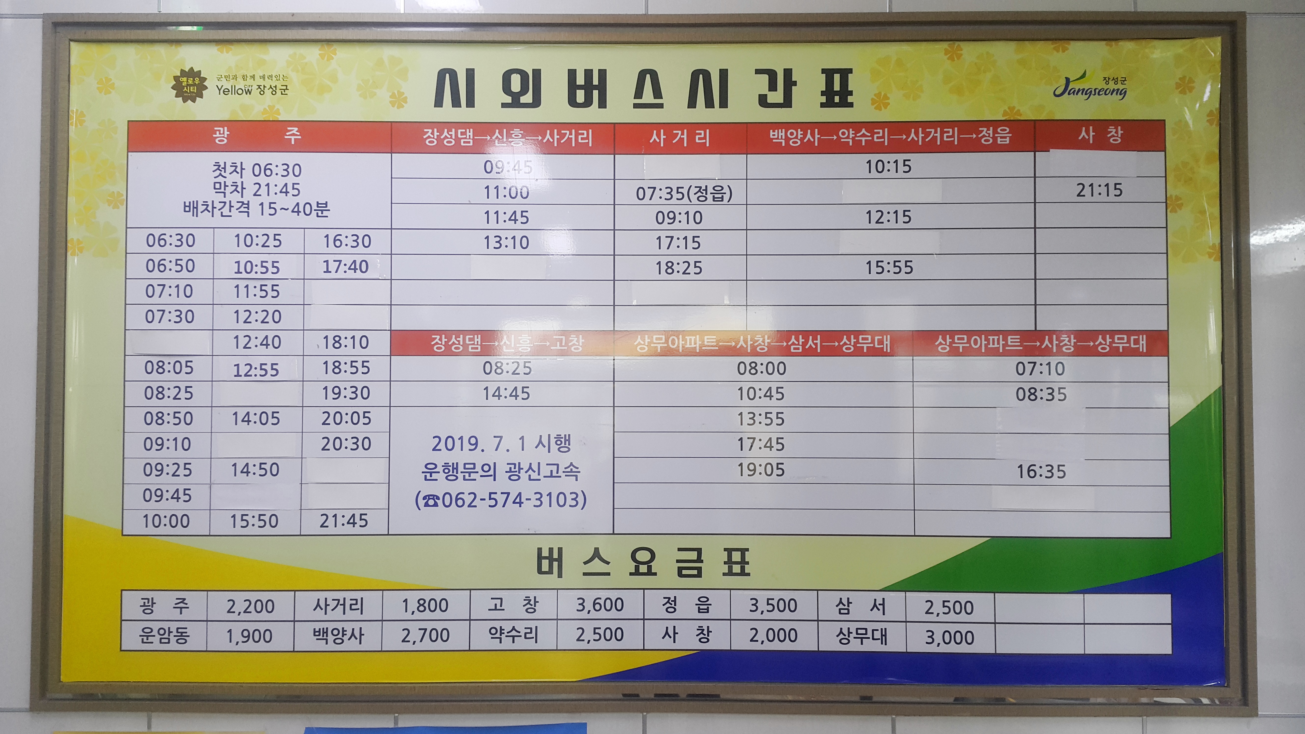 장성시외버스터미널 시간표