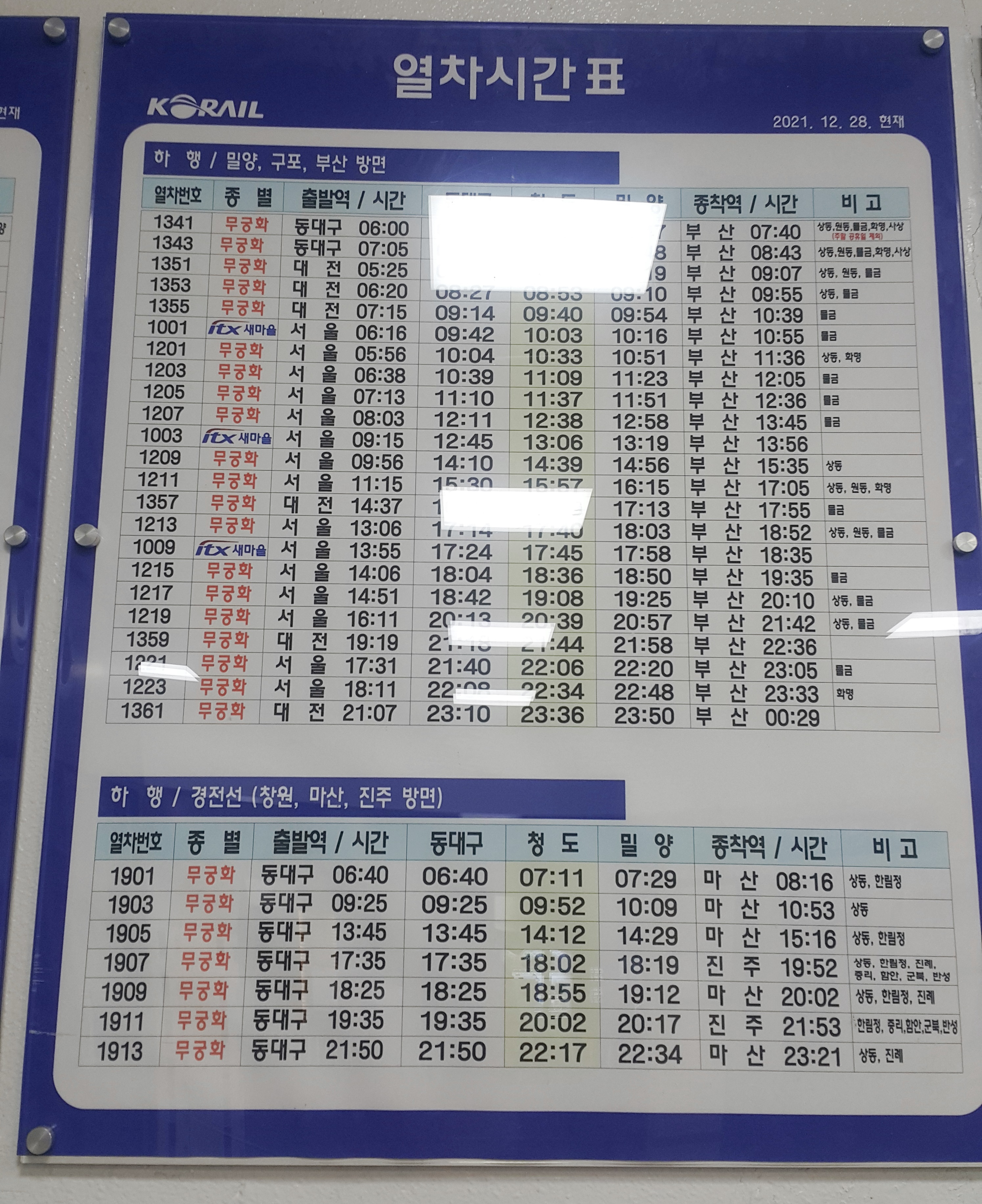 청도 출발 밀양, 구표, 부산, 창원, 마산, 진주 방면.