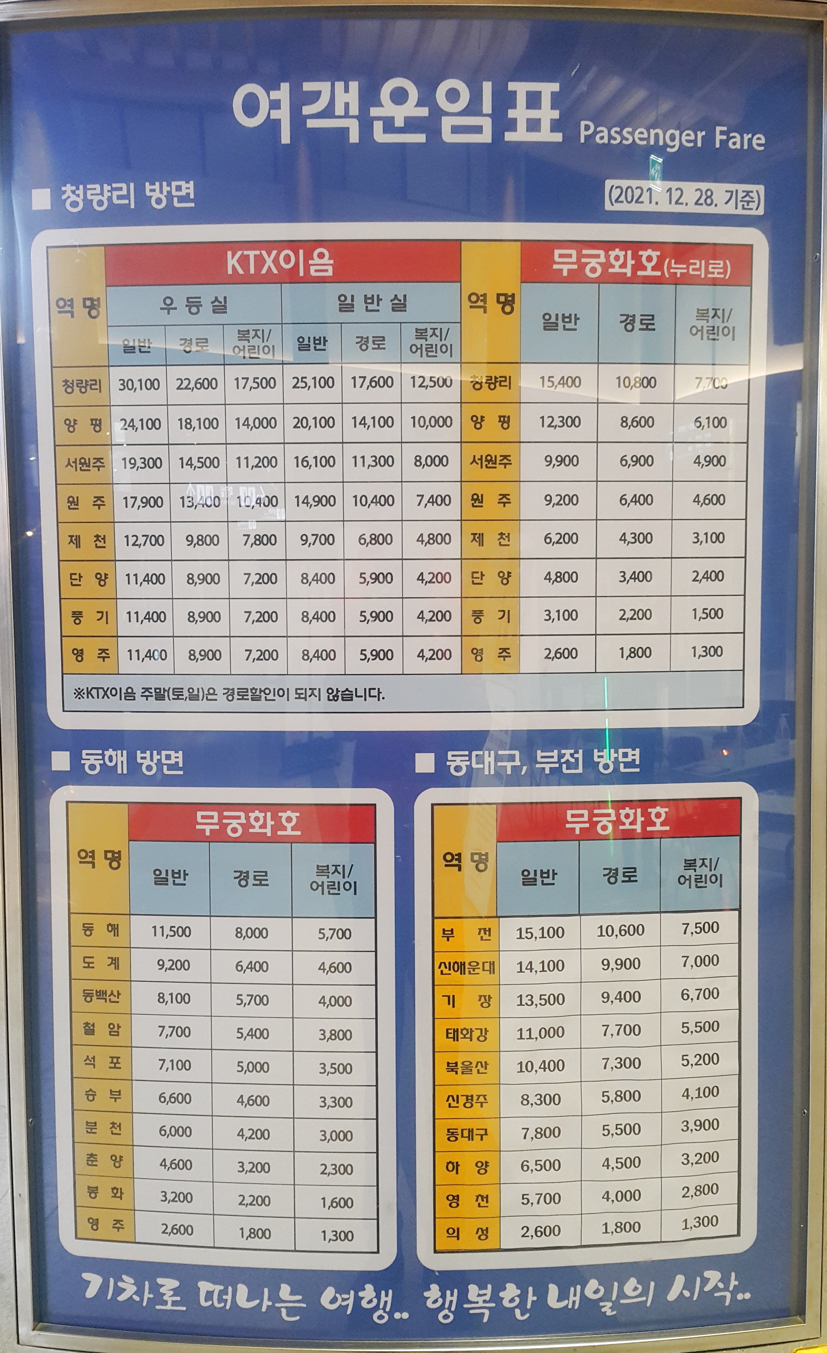 안동역 여객운임표