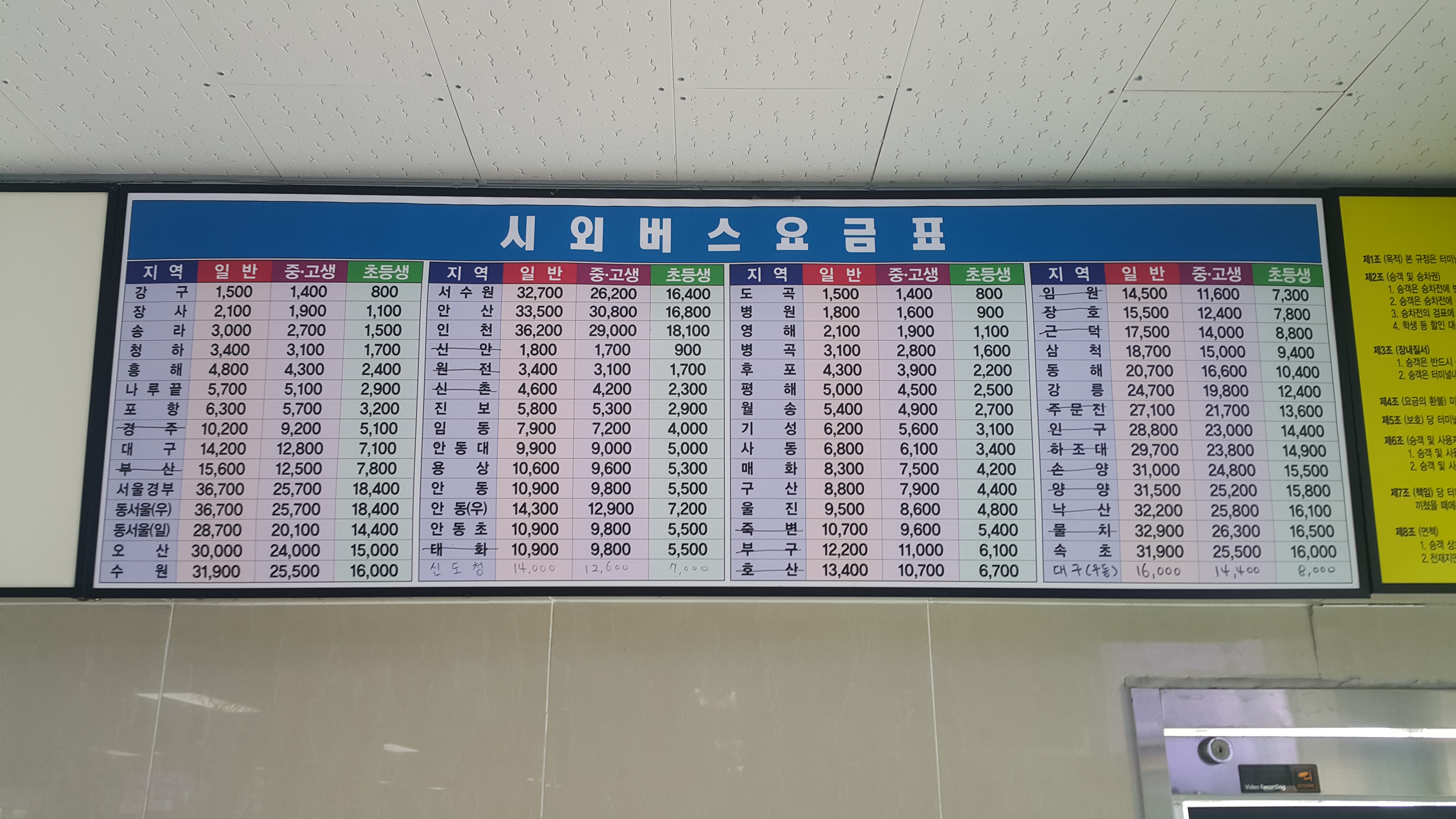 영덕시외버스터미널 시간표 2022년 4월 22일 기준표 영덕터미널
