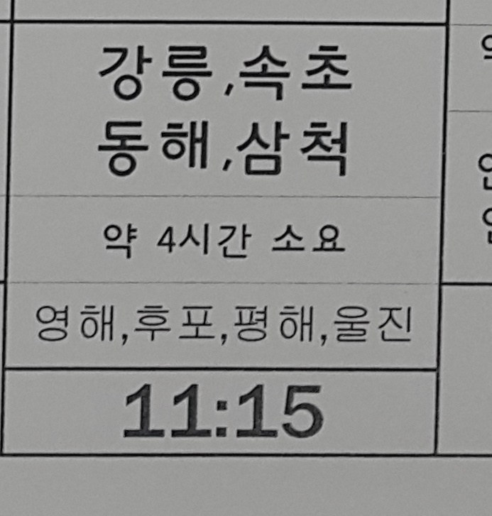 영덕 출발 강릉, 속초, 동해, 삼척 방면.