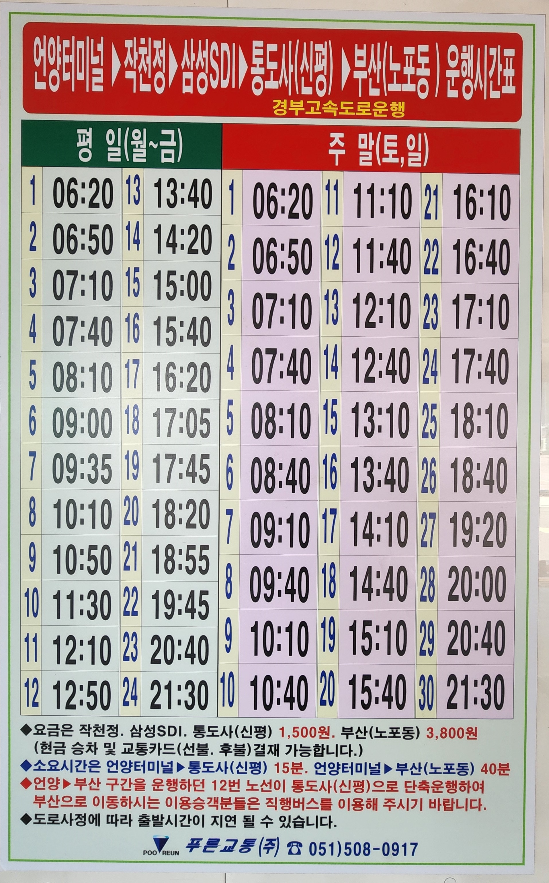 언양, 작천정, 삼성SDI, 통도사(신평), 부산(노포동) 운행시간표