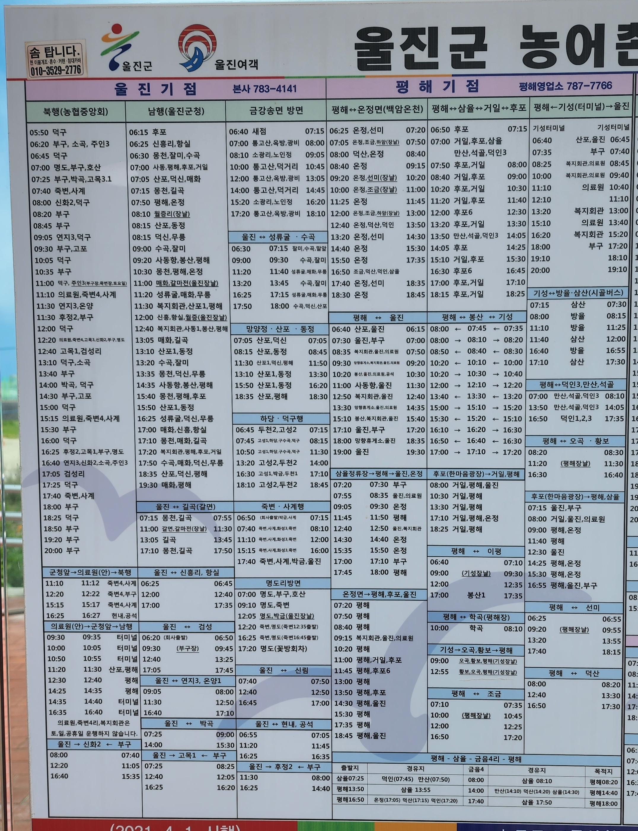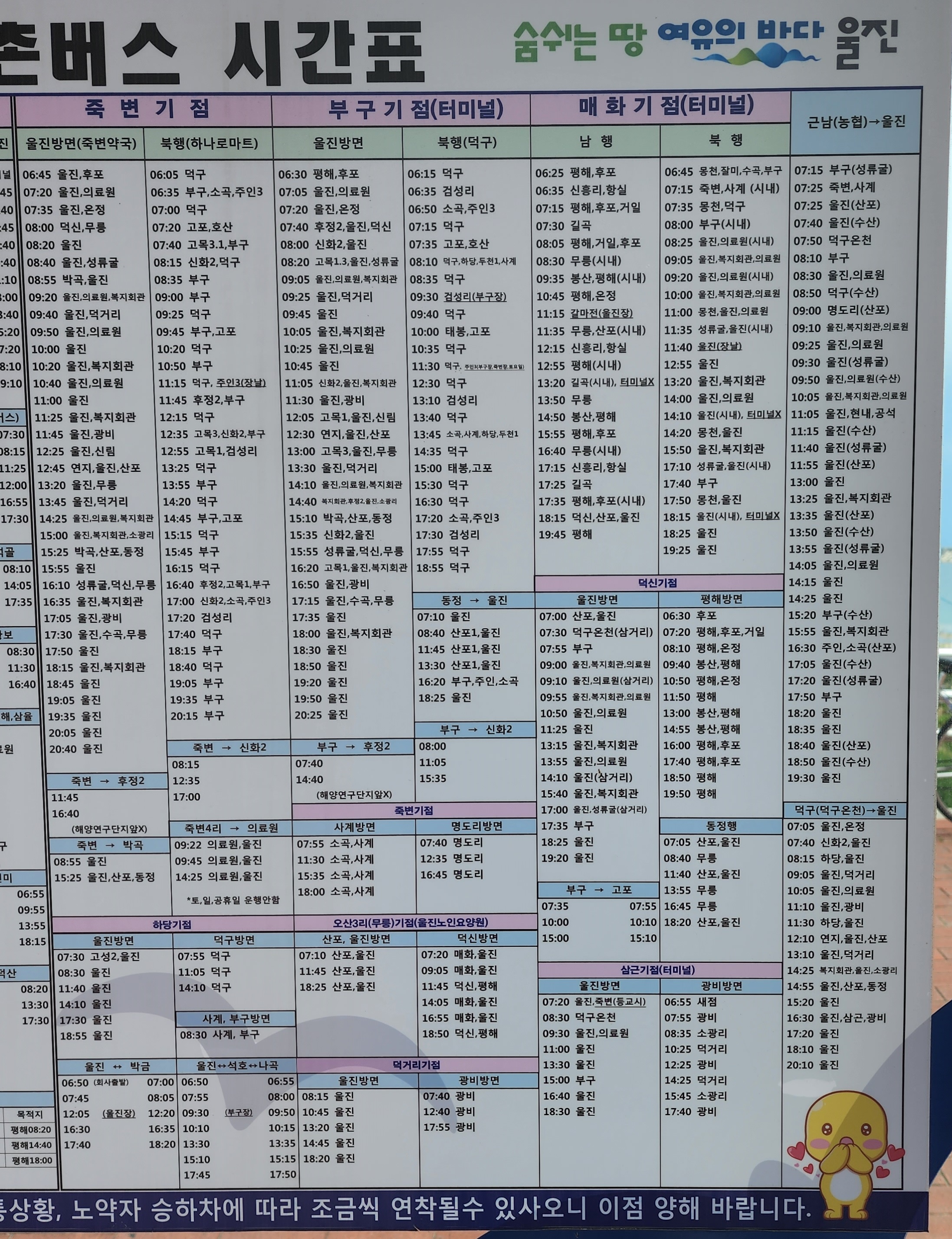 울진군 농어촌버스 시간표