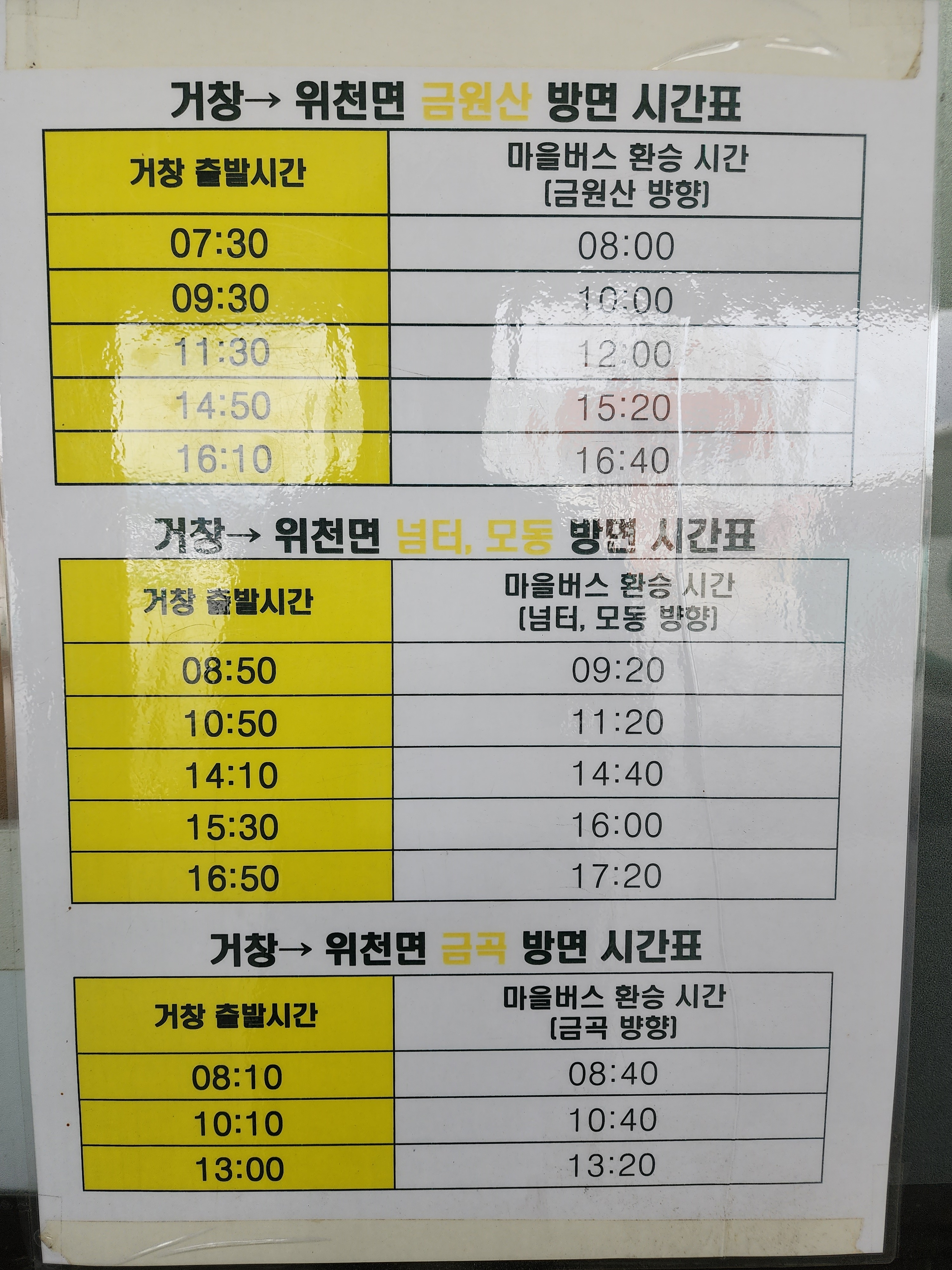 거창 출발 위천면, 금원산, 넘터, 모동, 금곡 방면.