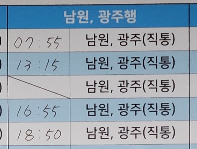 장수 출발 남원, 광주 방면.
