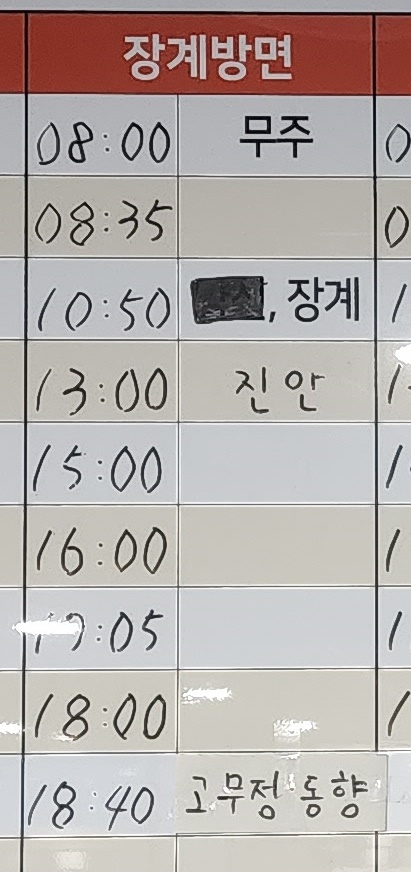 장수시외버스터미널 시간표