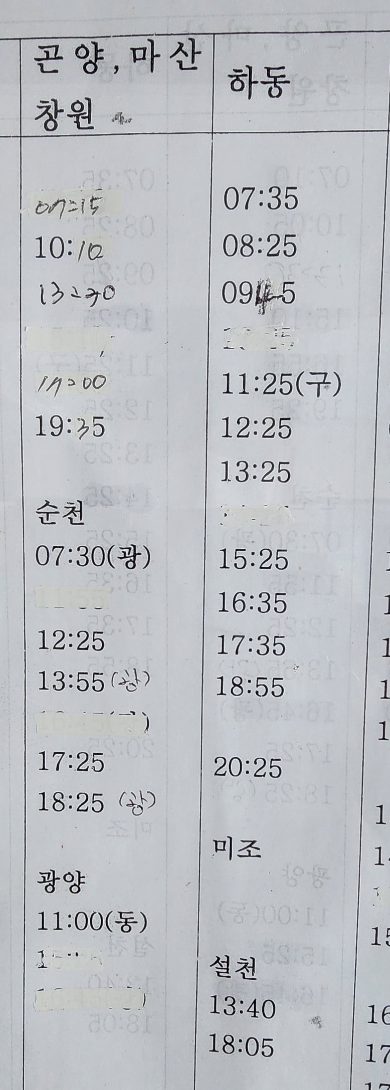 진교 출발 곤양, 마산, 창원, 하동 방면.