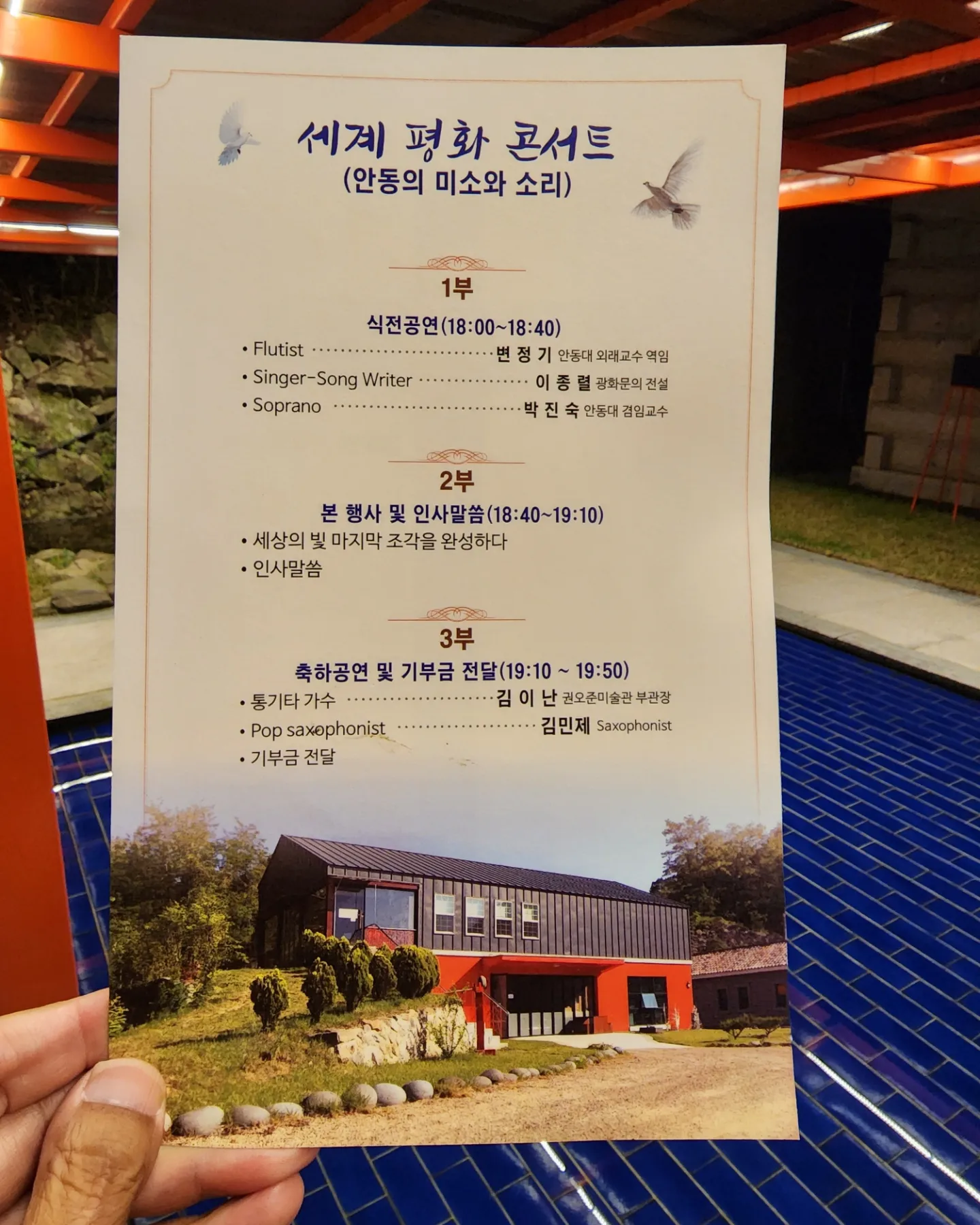 10월 21일 오후 6시 안동시 정하동 권오준미술관에서 세계평화콘서트 '안동의 미소와 소리'가 진행되었습니다.
