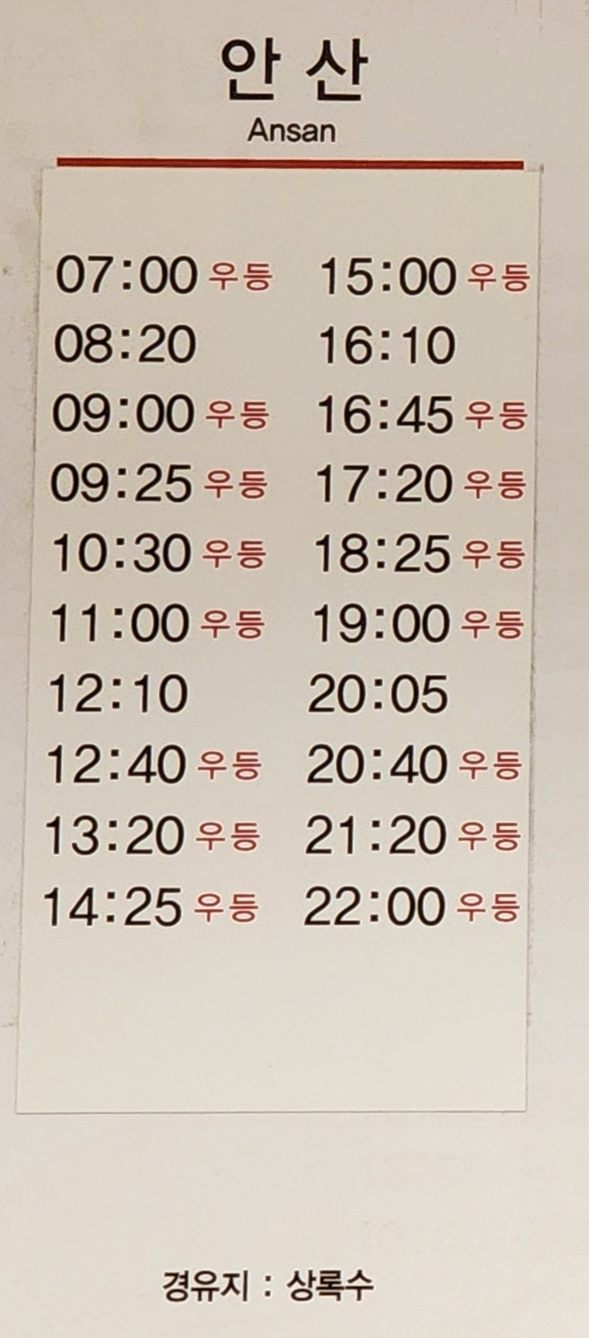 천안 출발 안산, 상록수 방면.