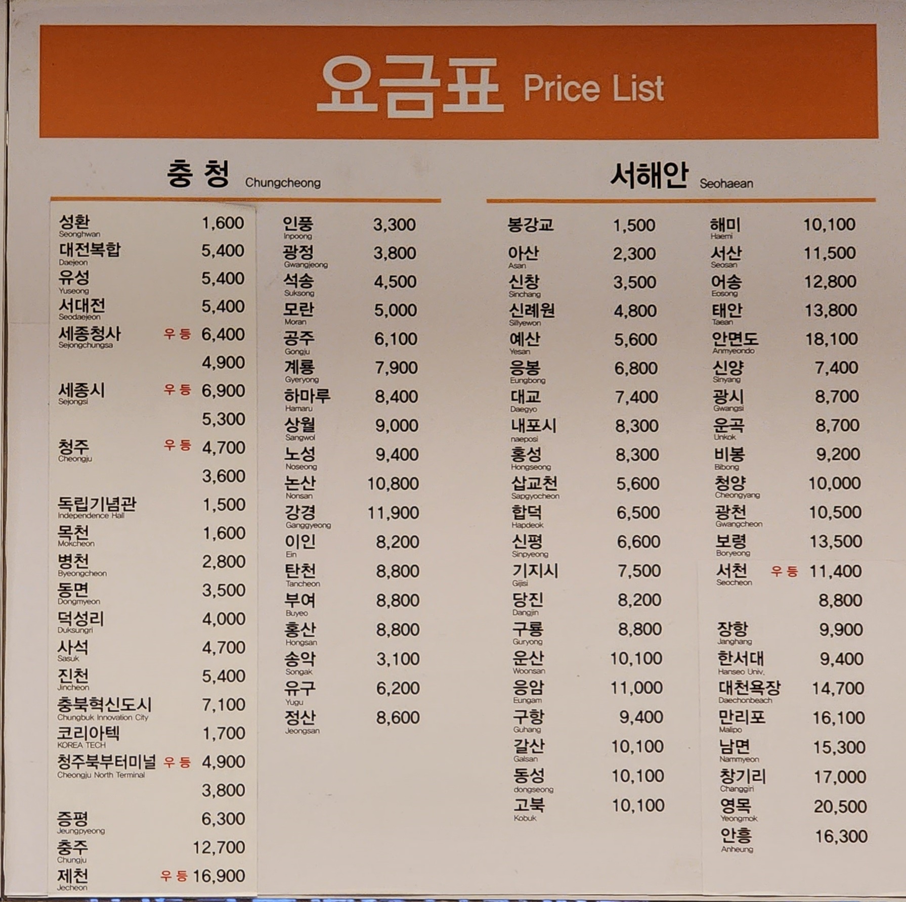 충청도 서해안 노선