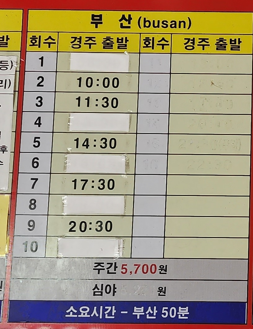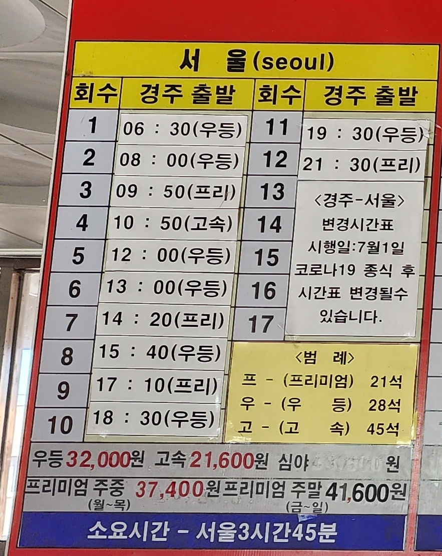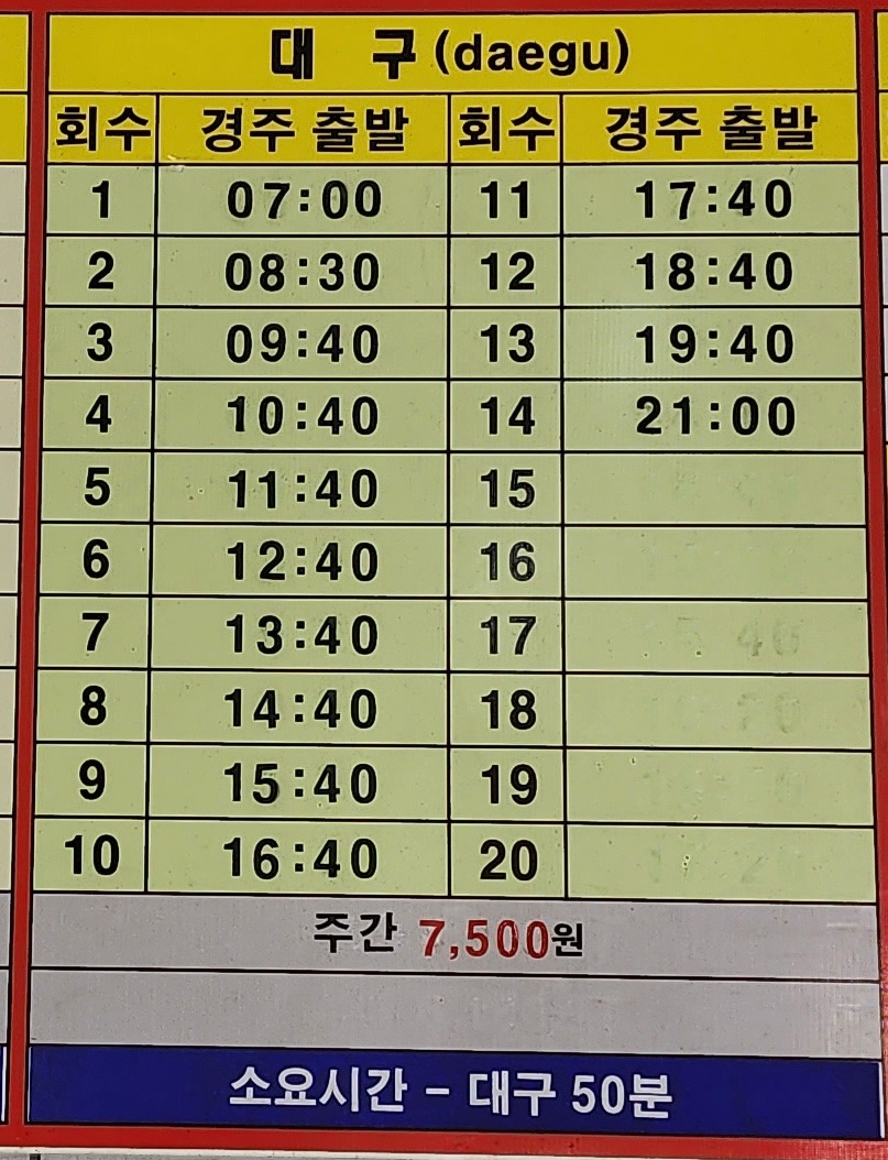 경주고속버스터미널 시간표