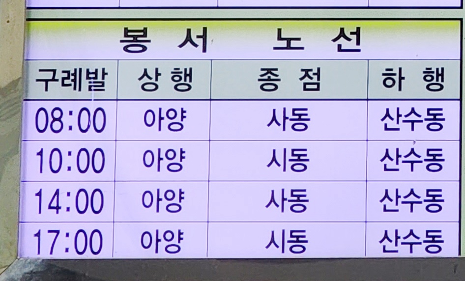 구례 출발 남원, 전주, 대구, 화개 하동 부산 방면.