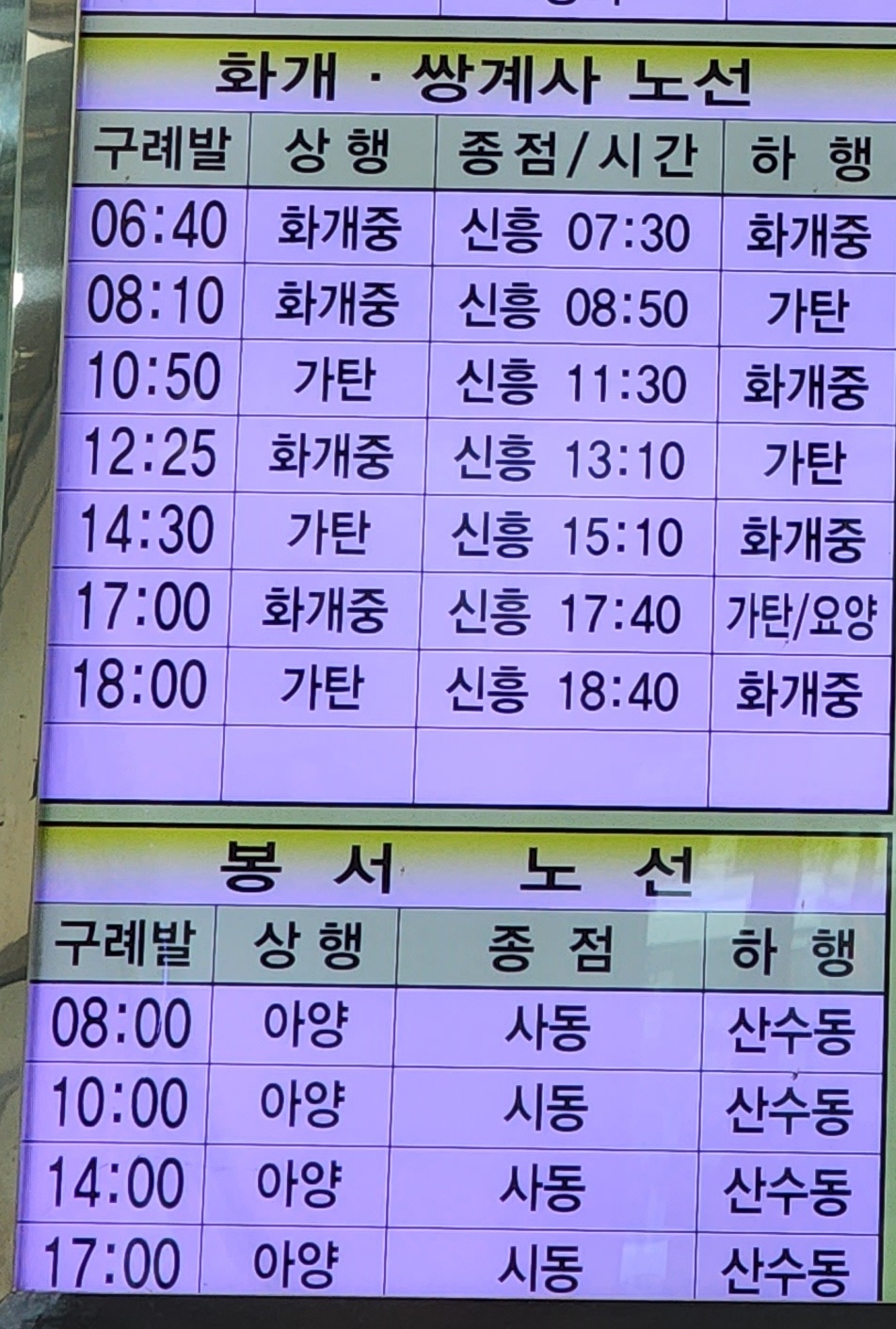 구례 출발 화개, 쌍계사, 봉서 노선.