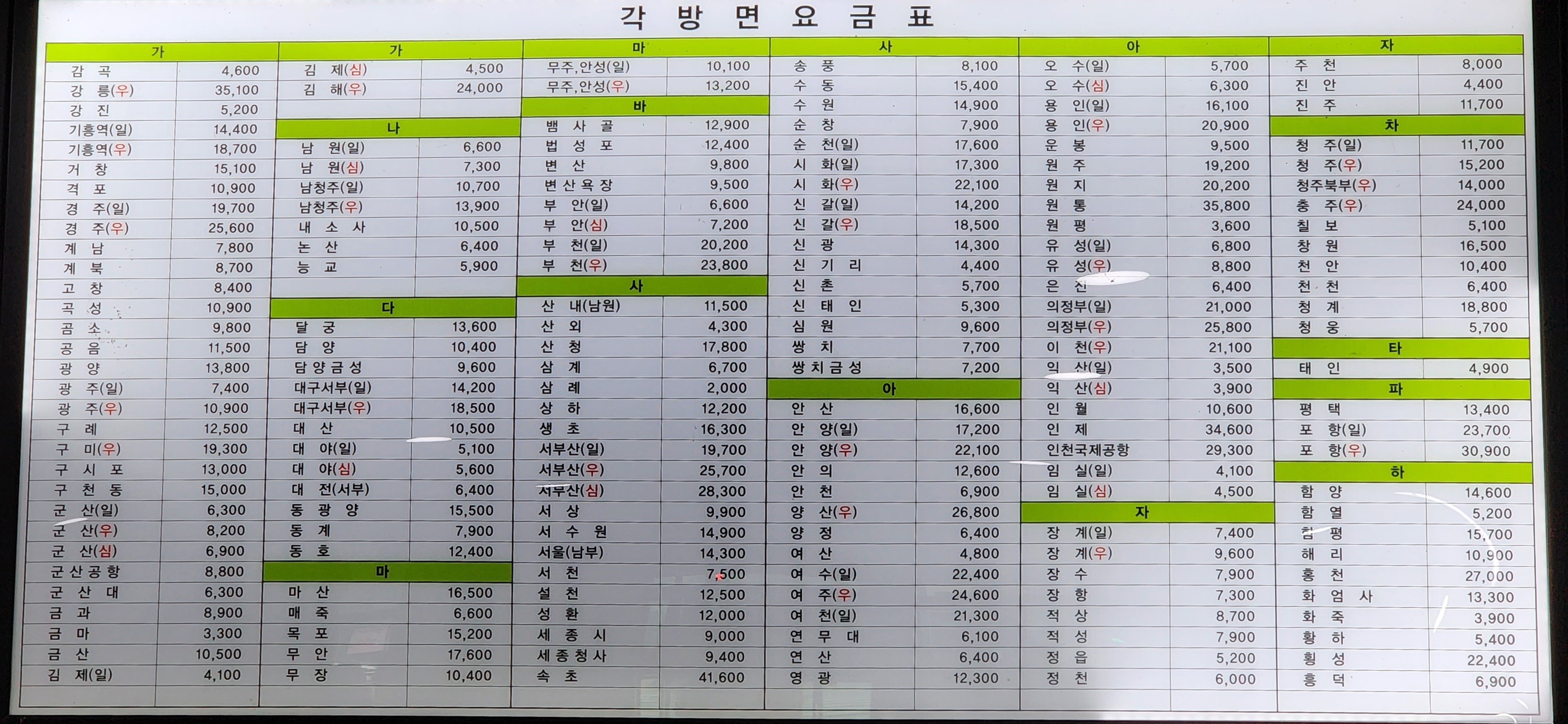 전주 출발 청주북부, 강릉, 원주, 홍천, 인제, 속초, 춘천, 함열, 논산, 서대전 방면.