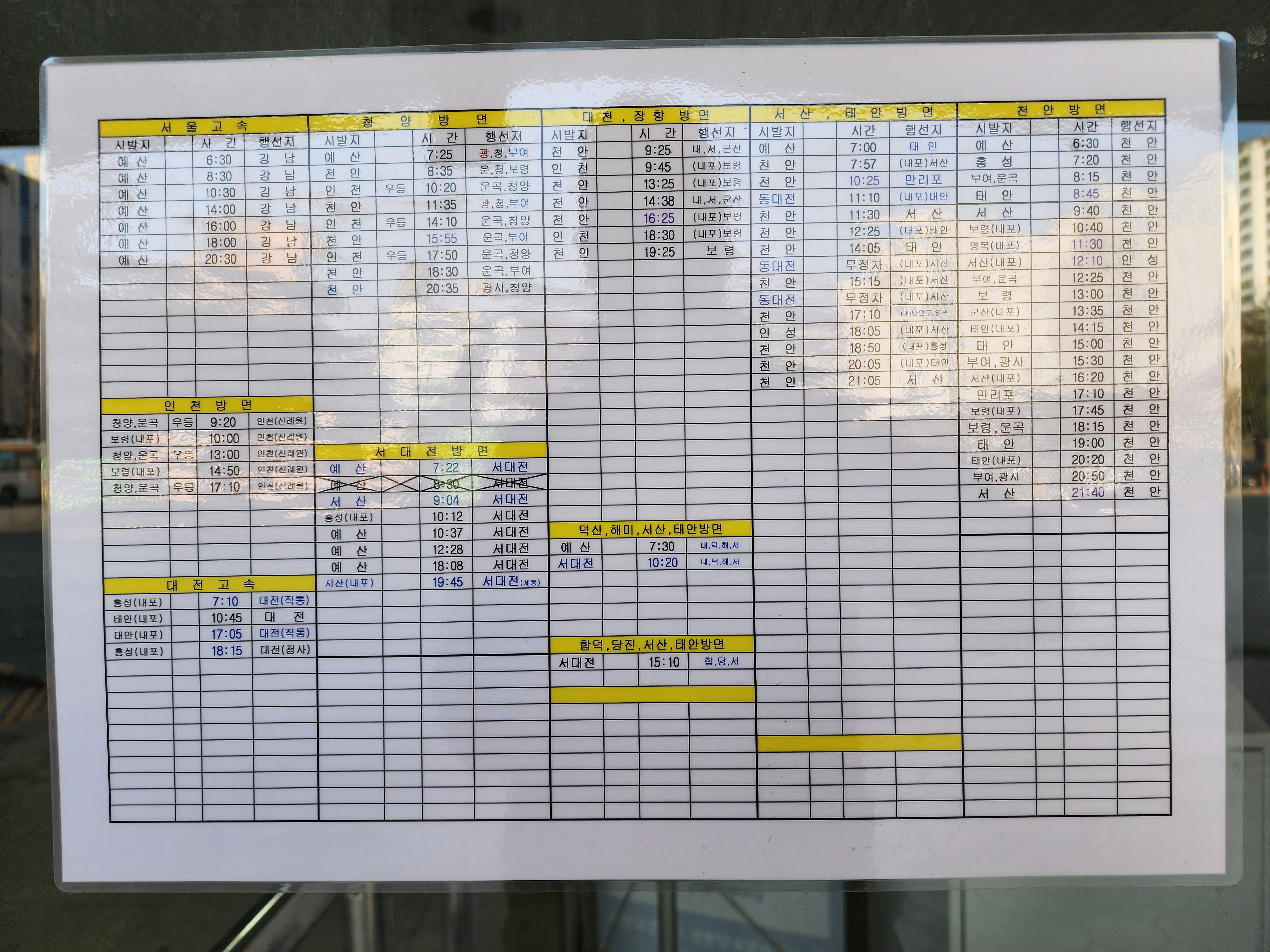예산 출발 해미, 홍성, 서산, 태안 방면.