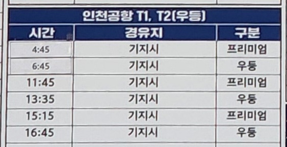당진 출발 기지시, 인천공항 T1, T2 방면.