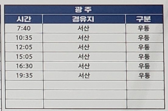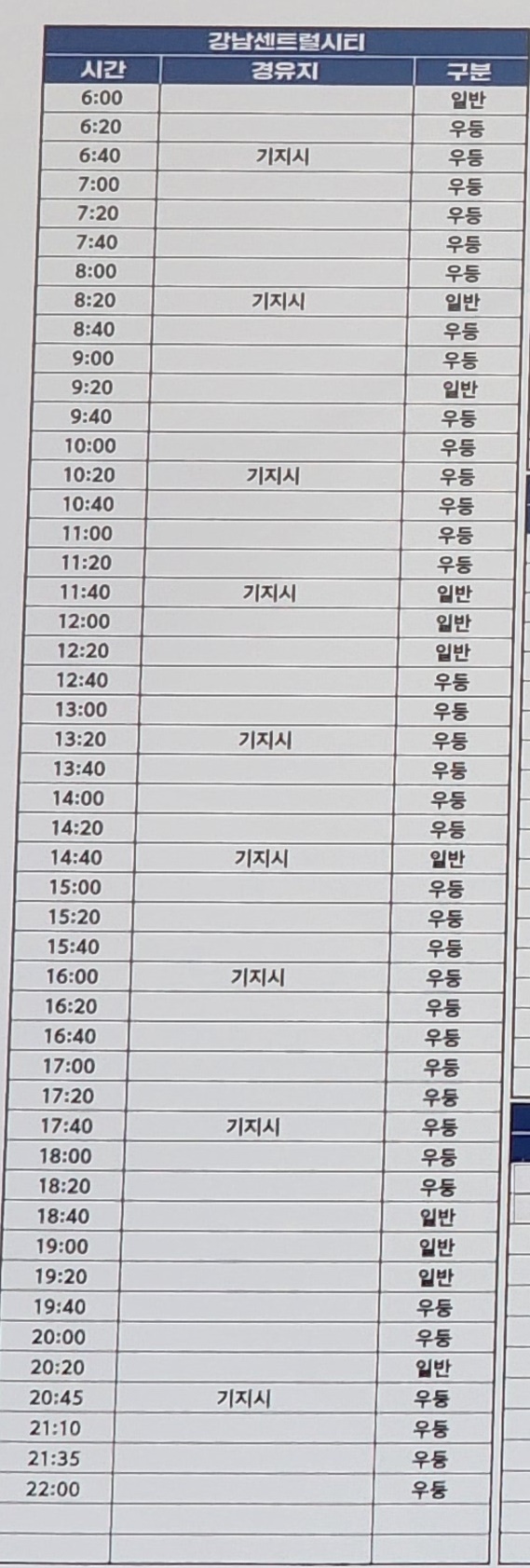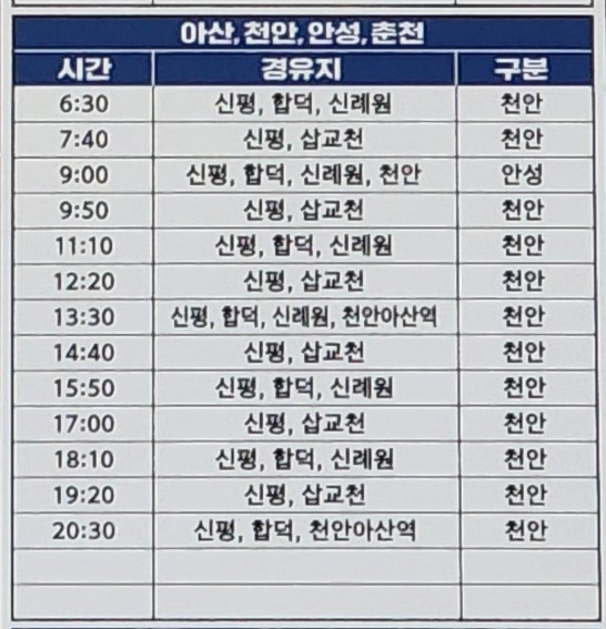 당진 출발 기지시, 신평, 삽교천, 서울 남부터미널 방면,