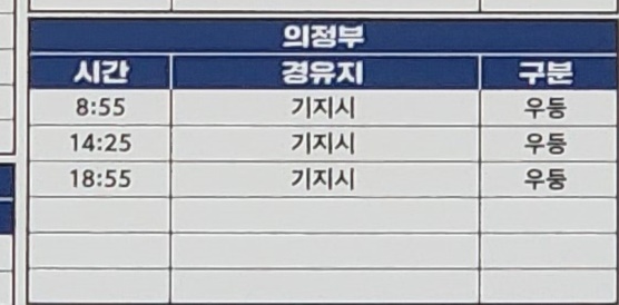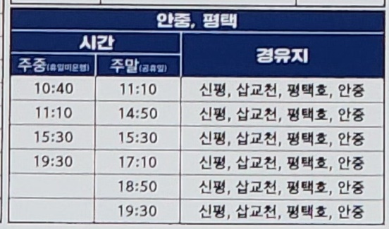 당친 출발 기지시, 신평, 삽교천 인천 방면.