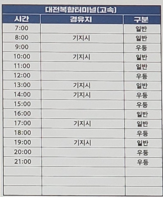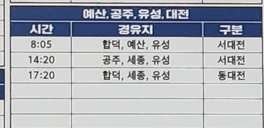 당진 출발 예산, 공주, 유성, 대전 방면.