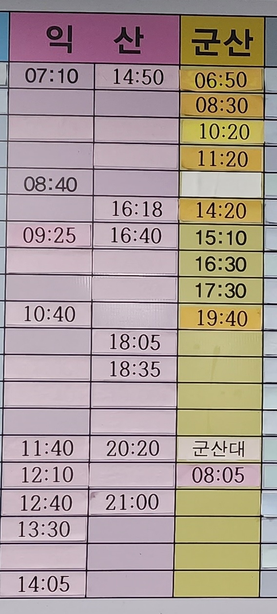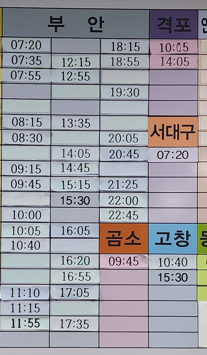 김제 출발 부안, 곰소, 격포, 서대구, 고창 방면.