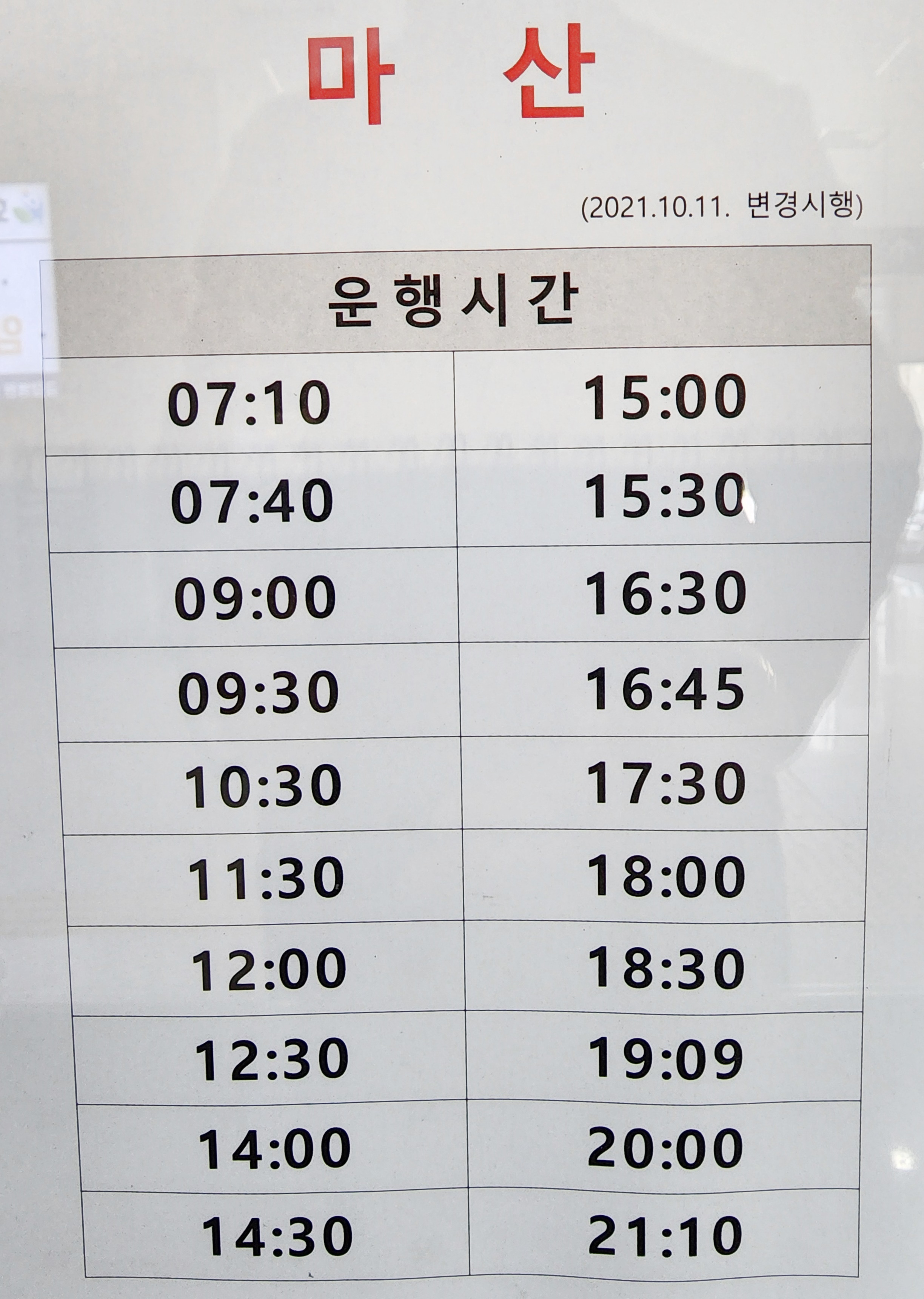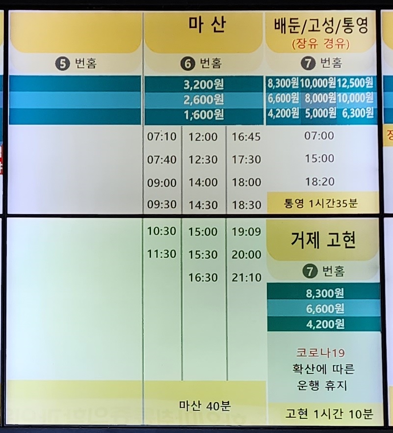 김해 출발 장유, 마산, 배둔, 고성, 통영 방면..