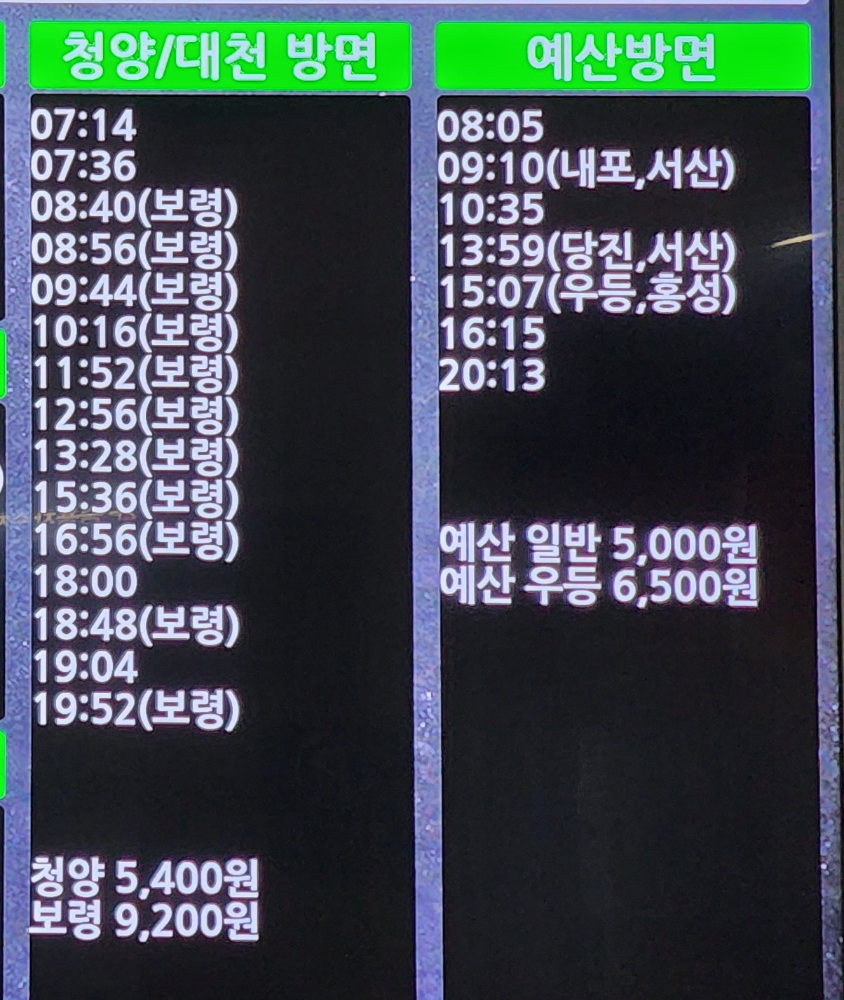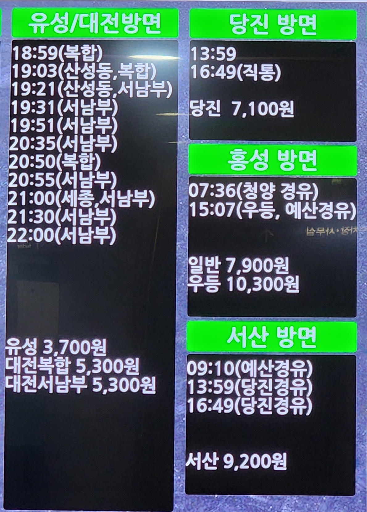 공주 출발 유성, 대전, 당진, 홍성, 서산 방면.