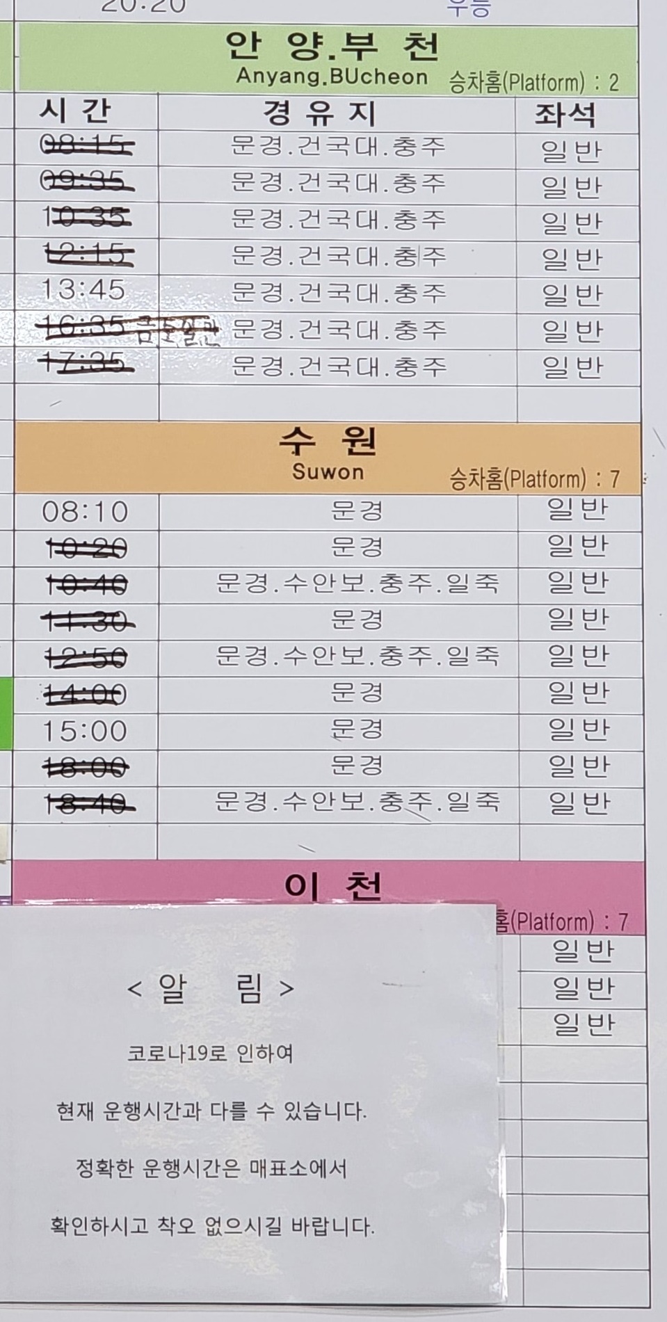 북대구, 동대구, 김천, 구미, 경주, 포항, 대전, 울산, 부산 방면.