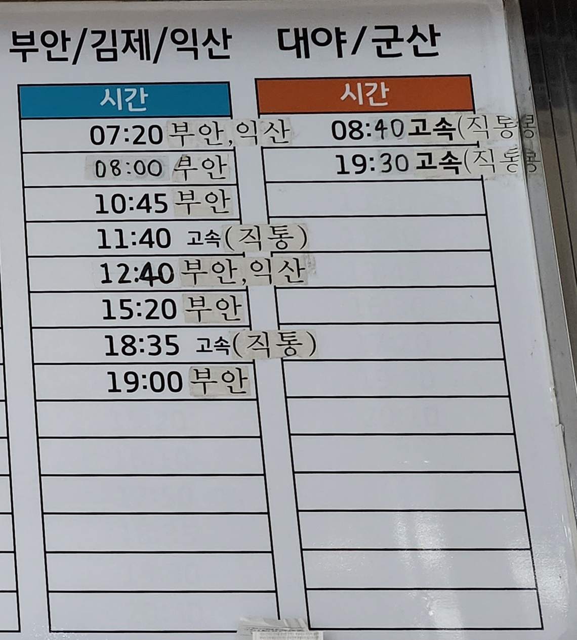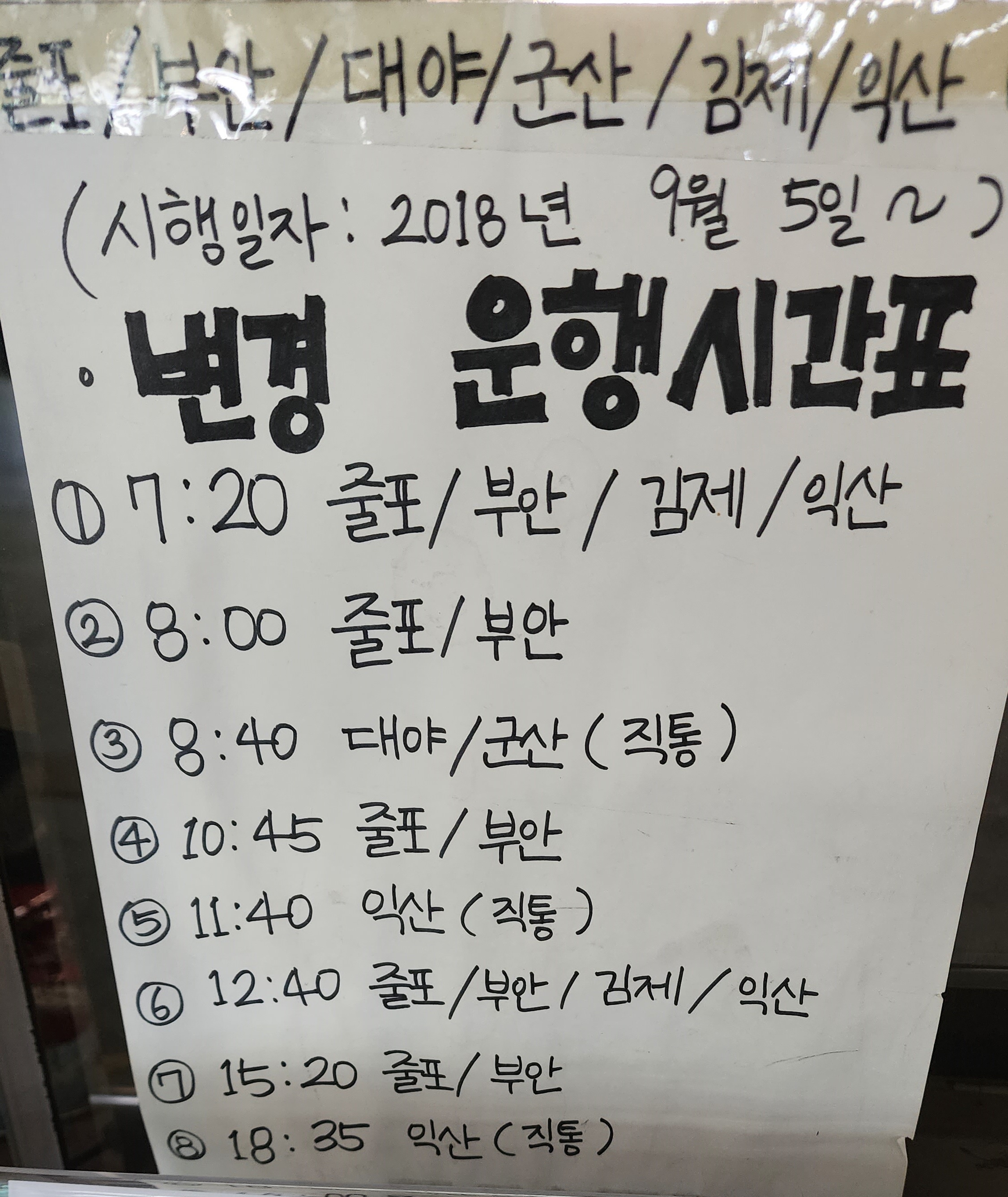 고창 출발 부안, 김제, 익산, 대야, 군산 방면.