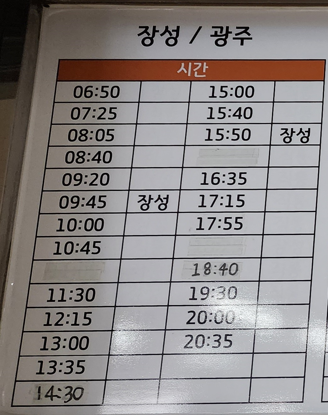 고창 출발 무장, 해리, 상하, 선운사 방면.