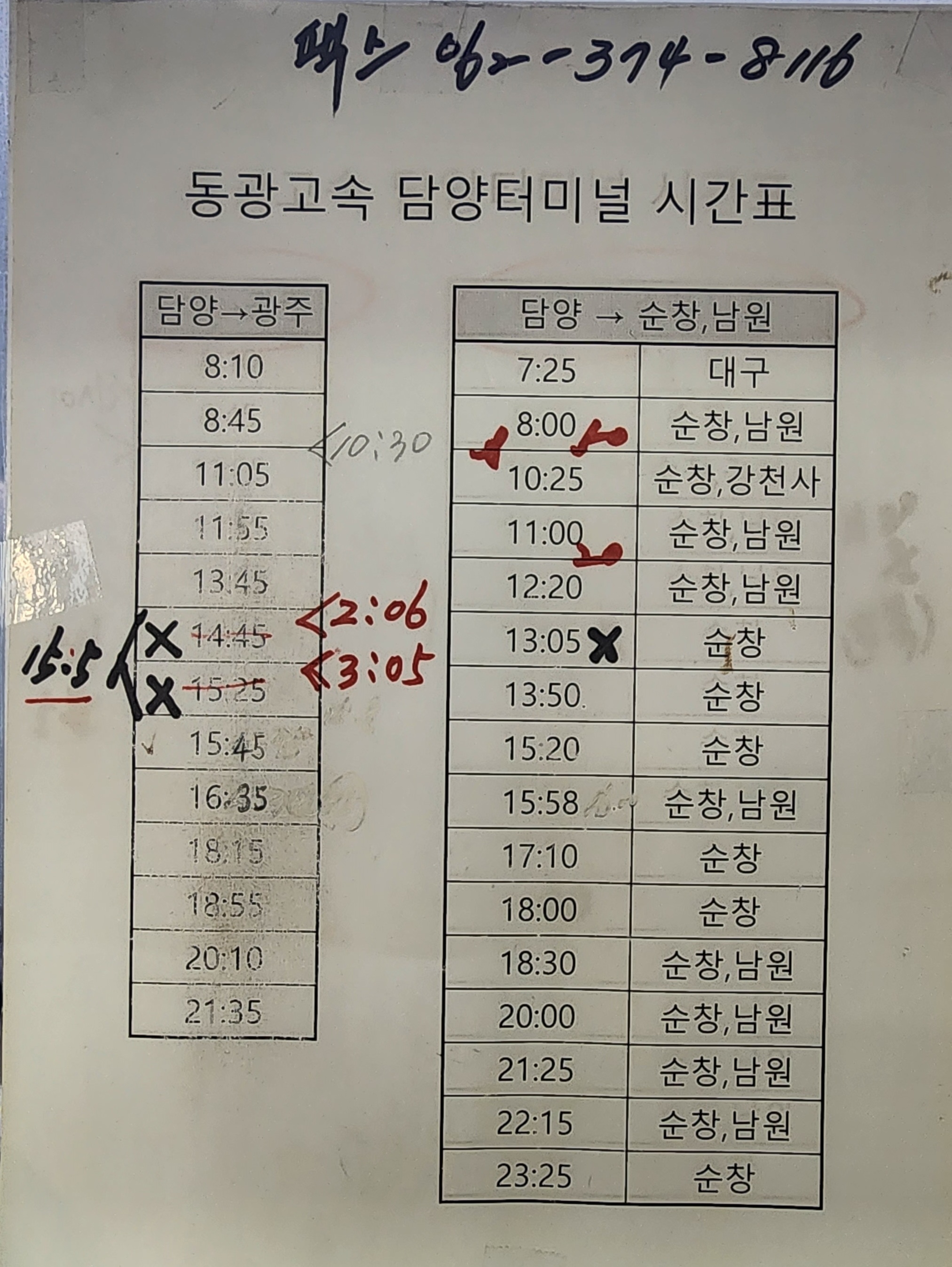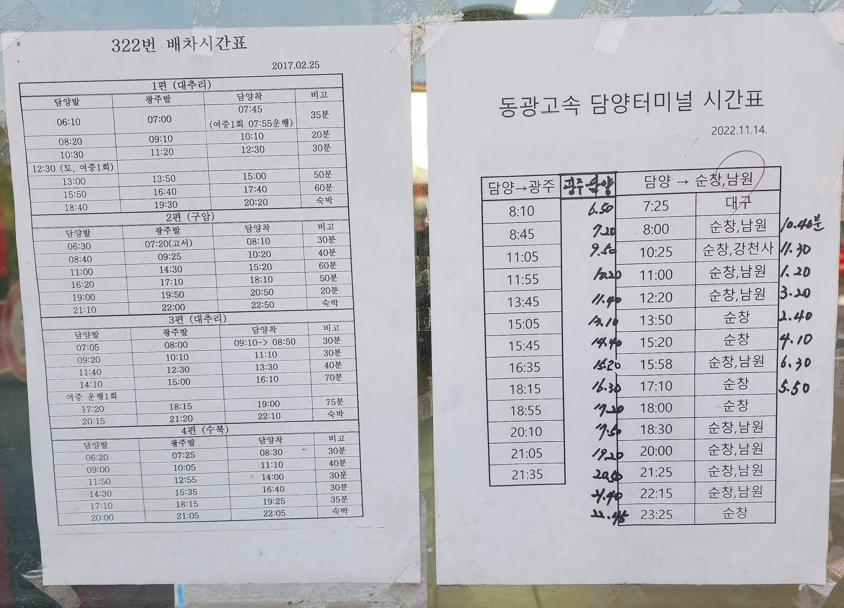 담양시외버스터미널 시간표 담양공용버스 터미널
