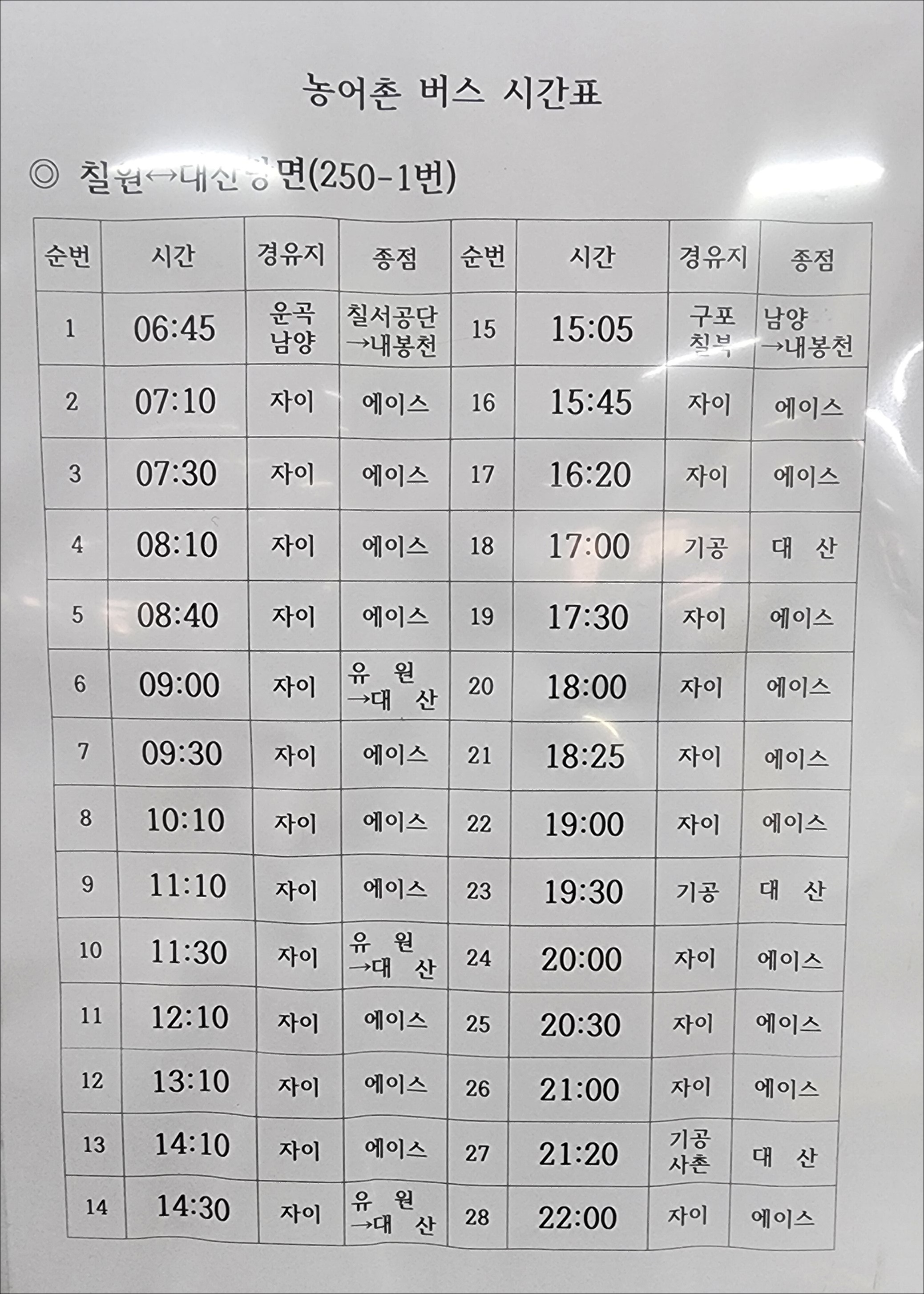 농어촌버스시간표 칠원~대산(250-1번)