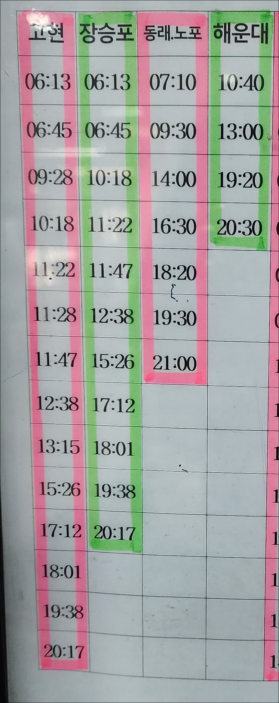 마산 남부 출발 고현, 장승포, 동래, 노포, 해운대 방면.