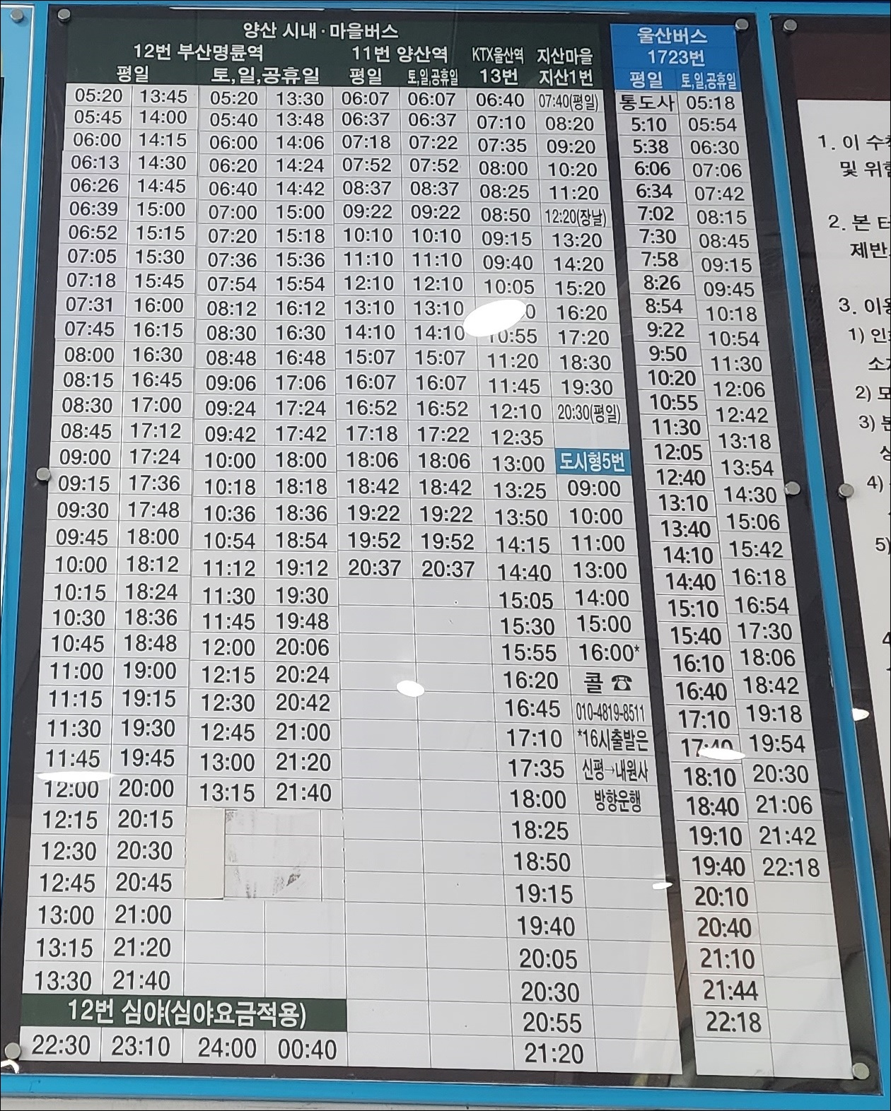 양산 시내 마을버스 시간표