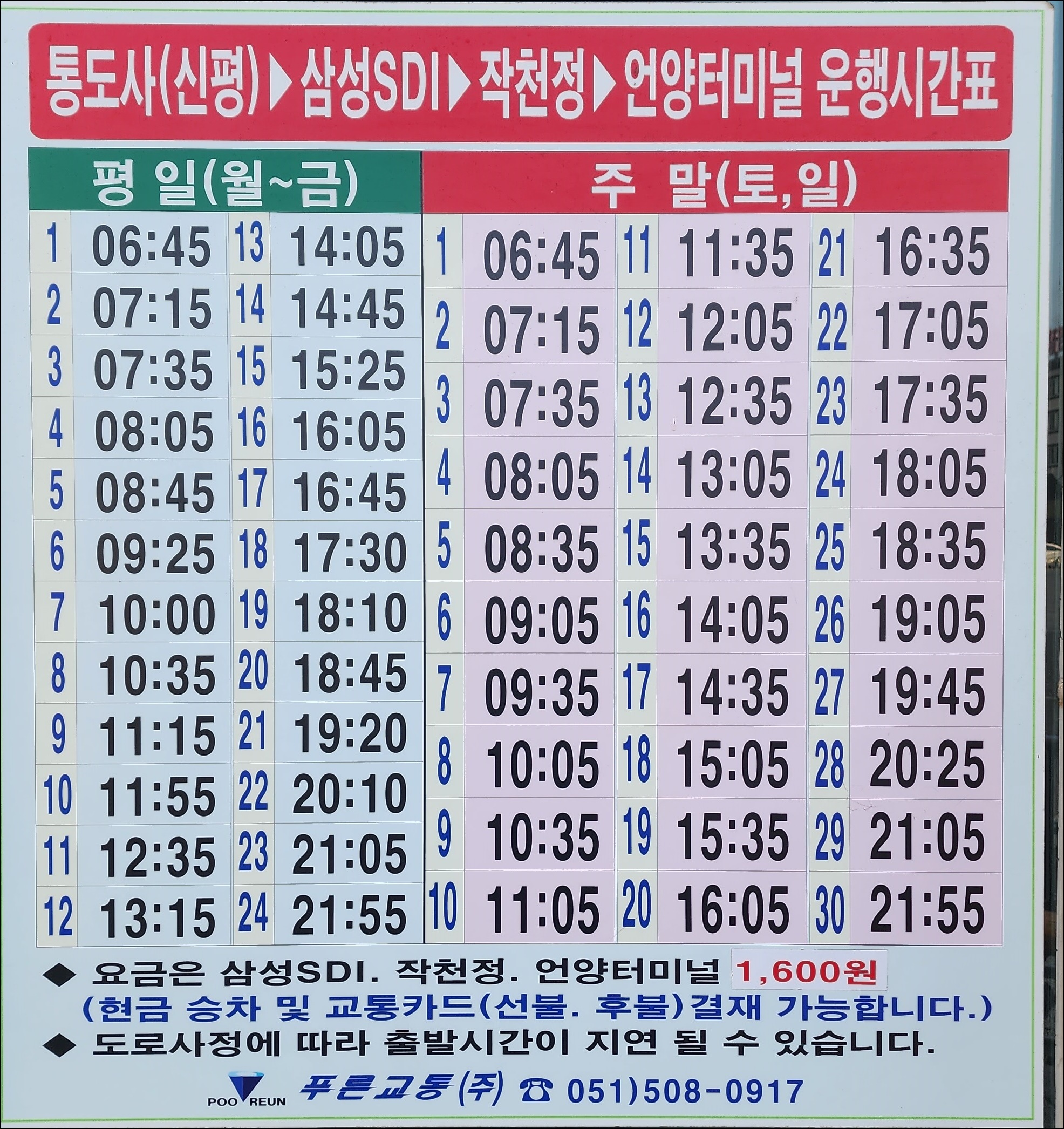 11번 통도사, 신평터미널 출발시간변경