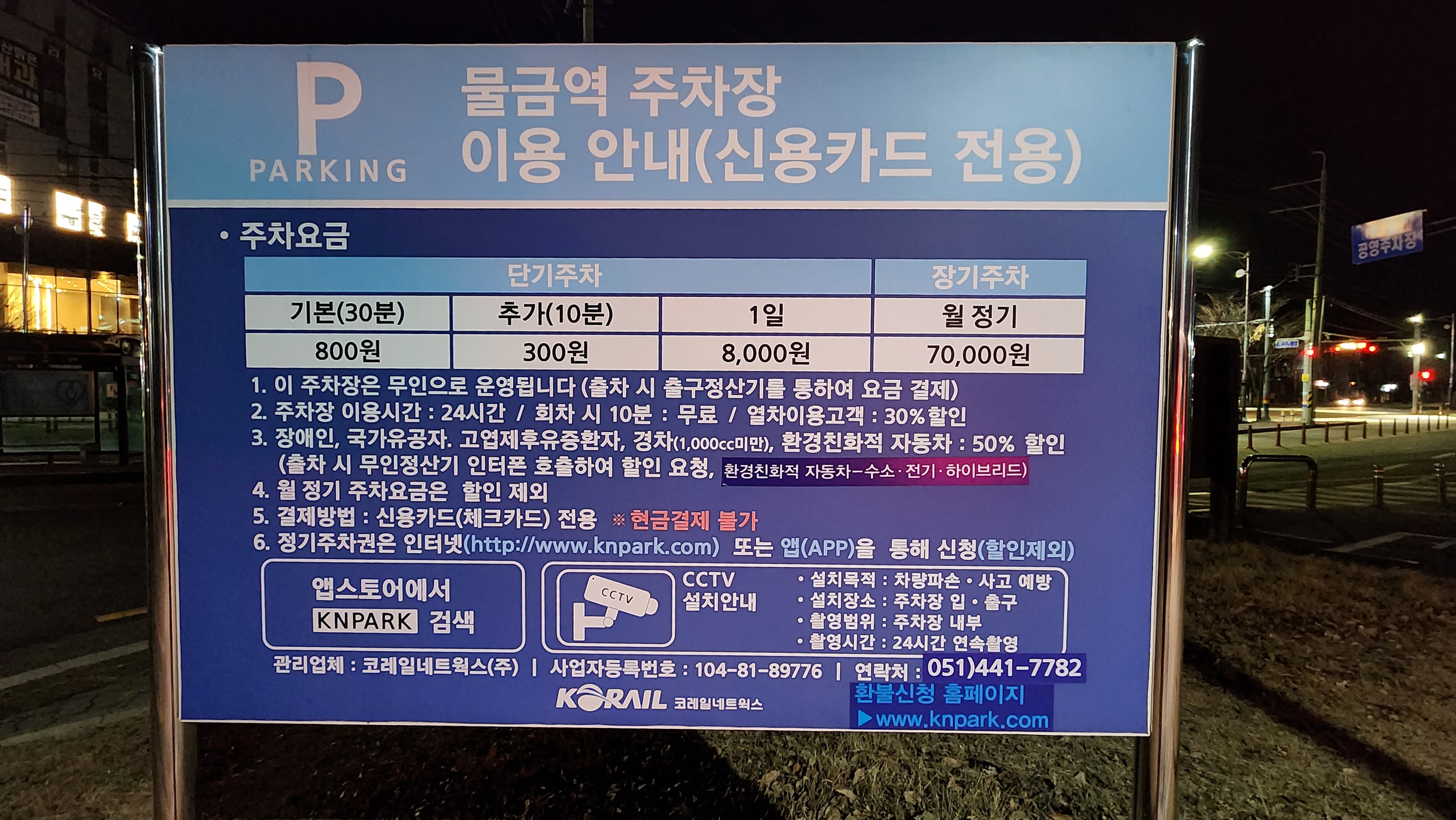 양산 물금역 KTX 시간표 공영주차장 유료 변경 요금표
