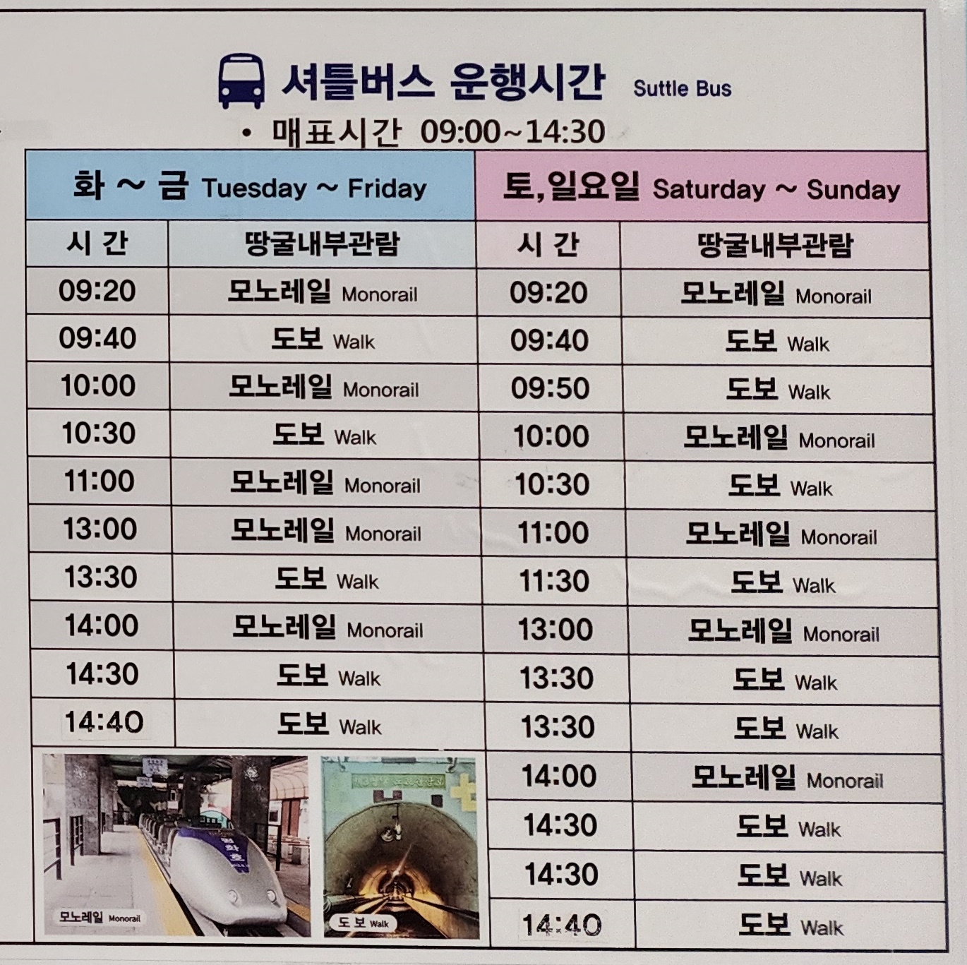 셔틀버스 운행시간표
