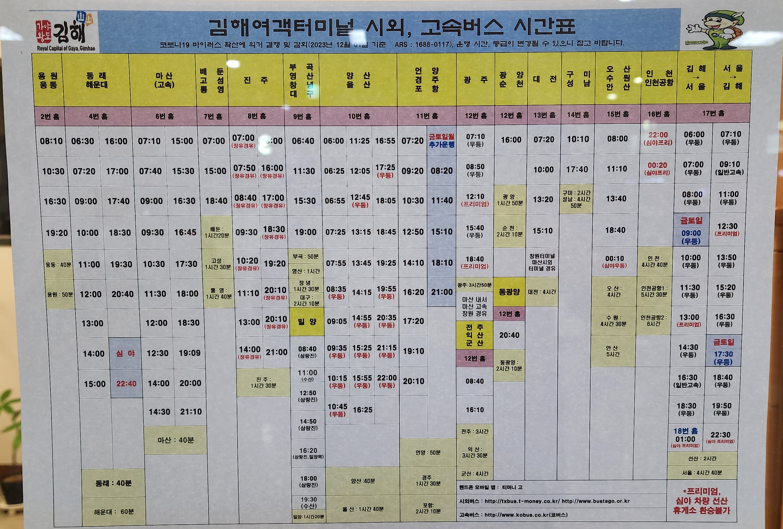 김해 출발 마산 시간표.