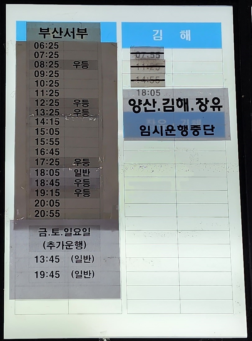 사천 출발 서울 남부, 대전, 천안, 인천 방면.