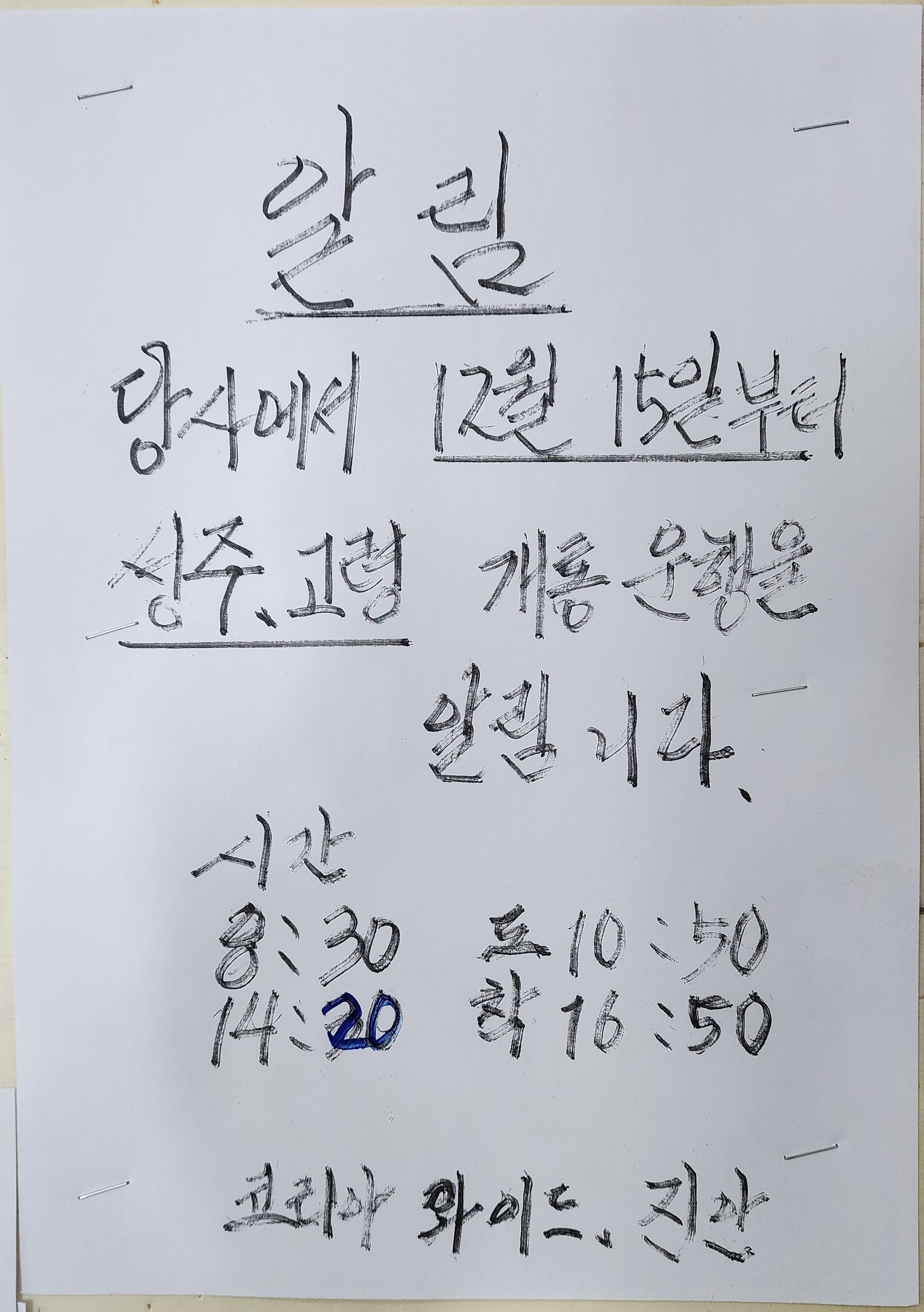 예천 출발 점촌, 상주, 김천, 용궁, 옥산, 김천 방며ㅑㅑㄴ.