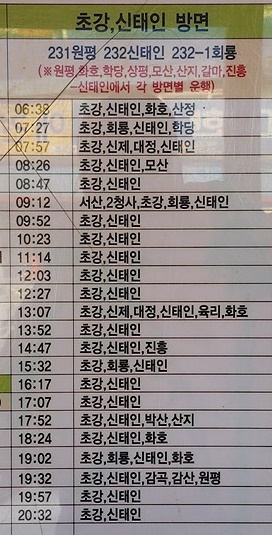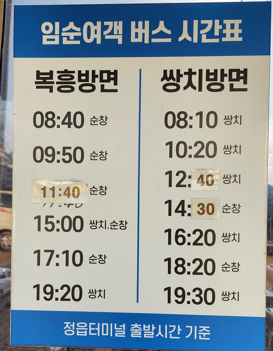 샘고을시장 출발 임순여객 버스 시간표 북흥, 쌍치 방면.