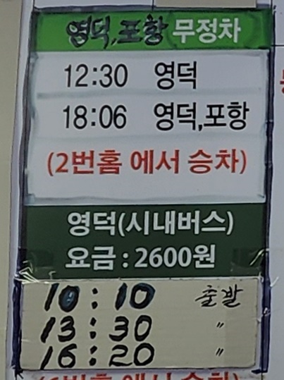 경기여객 안동터미널 출발 진보터미널 도착 시간